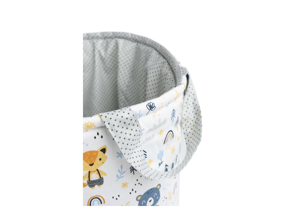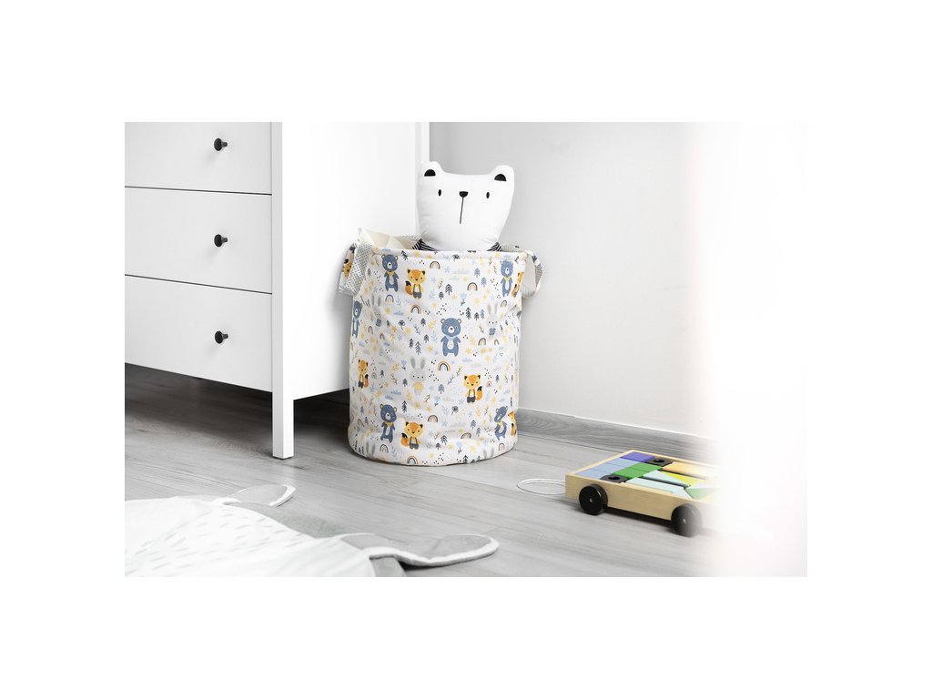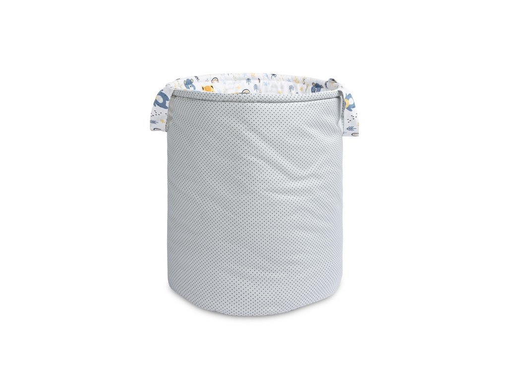 Bavlněný koš Sensillo je ideální do dětského pokoje, kam se vejde mnoho hraček a doplňků. Může být také použit jako koš na prádlo. Je oboustranný a jeho opláštění je vyrobeno ze 100% bavlny. Byl vyztužen vrstvou silikonové netkané textilie, díky které si zachovává svůj střih a složený se vejde do zásuvky. Má uši, které usnadňují přenášení.