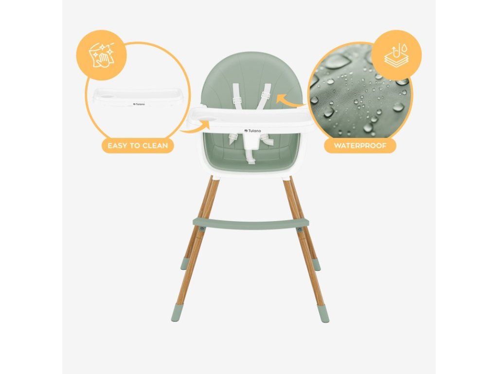 Speciální funkce: Kojicí židle s nastavitelnou opěrkou nohou 5bodový bezpečnostní pás s aretací mezi nohama Opěrka nohou podporující držení těla, v případě potřeby odnímatelná Nastavitelné nohy podle výšky dítěte Odnímatelný podnos, vhodný k čištění Protiskluzové podložky na nohách pro zajištění stability Měkký potah z ekokůže, snadno se udržuje v čistotě Dřevěnéocelové nohy , stylové a robustní Robustní, odolná konstrukce pro dlouholeté používání Minimalistický design, který se hodí do každého interiéru Dětská židle na krmení Morsel. Bezpečná cesta k nové chuti Nastavitelné pětibodové bezpečnostní pásy, které lze nastavit tak, aby vyhovovaly držení těla dítěte. Blokovací zařízení mezi nohama - chrání malé děti před sklouznutím. Protiskluzové nohy - zaručují vynikající přilnavost k podlaze a zabraňují poškrábání podlahy. Autosedačka splňuje normy CE EN 14988:2017+A1:2020. Funkční židlička na krmení 2 v 1 Dvě úrovně nastavení výšky - teleskopicky nastavitelné nohy umožňují přizpůsobit židli potřebám dítěte. Vysoká židlička na krmení - skvělá pro rodinné jídlo u stolu. Pohodlná nízká židlička - nutnost pro všechny herní a kreativní aktivity. Intuitivní systém nastavení a montáže, díky kterému je nastavení židle podle potřeb vašeho dítěte rychlé a snadné. Pohodlná židle pro starší dítě Morsel je funkční židlička na krmení a židlička na hraní v jednom. Díky možnosti nastavení výšky nohou bude židlička vaše dítě doprovázet od chvíle, kdy se samo posadí, až do jeho 6 let nebo více než 25 kg. Rozhodněte se pro funkční model, který vám i vašemu dítěti bude sloužit několik let. Snadno omyvatelné sedátko na krmení Odnímatelný tácek se snadno čistí pod tekoucí vodou. Hladká povrchová úprava tácu, takže jídlo neuvízne v těžko přístupných zákoutích. Potah sedátka je vyroben z měkké ekokůže, na které snadno odstraníte skvrny vlhkým hadříkem. Voděodolný a odolný materiál nevyžaduje údržbu a šetří váš čas. Se židličkou na krmení Morsel může vaše dítě objevovat nové chutě bez omezení. Židlička přizpůsobená potřebám vašeho dítěte Podnos s třístupňovým nastavením , aby byl každý pokus o samostatné jídlo co nejpohodlnější. Profilovaný podnos, který zabraňuje sklouznutí talířů a hrníčků. Pohodlné sedátko zaručuje pohodlí během jídla. Židlička na krmení s opěrkou nohou Opěrka nohou zajišťuje stabilní polohu při jídle a má příznivý vliv na trávicí systém vašeho dítěte. Odnímatelná opěrka nohou se snadno instaluje a demontuje díky praktickým šroubům. Židlička na krmení s opěrkou nohou poskytuje pocit bezpečí, takže si malé děti mohou plně vychutnat každé jídlo. Specifikace Výrobce: M: Tulano Model: Morsel Green Věkové rozmezí: od 6 měsíců do 6 let Nosnost: 25 kg Materiál: PVC, ocel Nastavitelná výška: Ano Funkce krmicí židle: výrobek je určen pro děti, které umí samostatně sedět (přibližně 6 měsíců) a do 3 let nebo do maximální hmotnosti 15 kg. Funkce nízké židle: výrobek mohou používat děti od 3 let do 6 let nebo s maximální hmotností 25 kg. Výrobek byl testován a splňuje všechny požadavky normy EN 14988:2017+A1:2020. Každý prostor je jiný příběh Každý prostor je jedinečný a má svůj vlastní příběh, při jehož objevování nabízíme podporu. Jako značka pomáháme odhalit to, co je v prostoru nejdůležitější.Doplňkové parametry