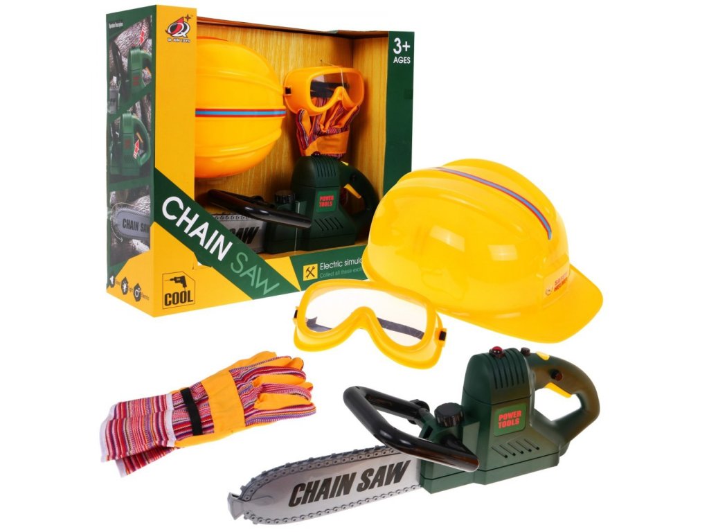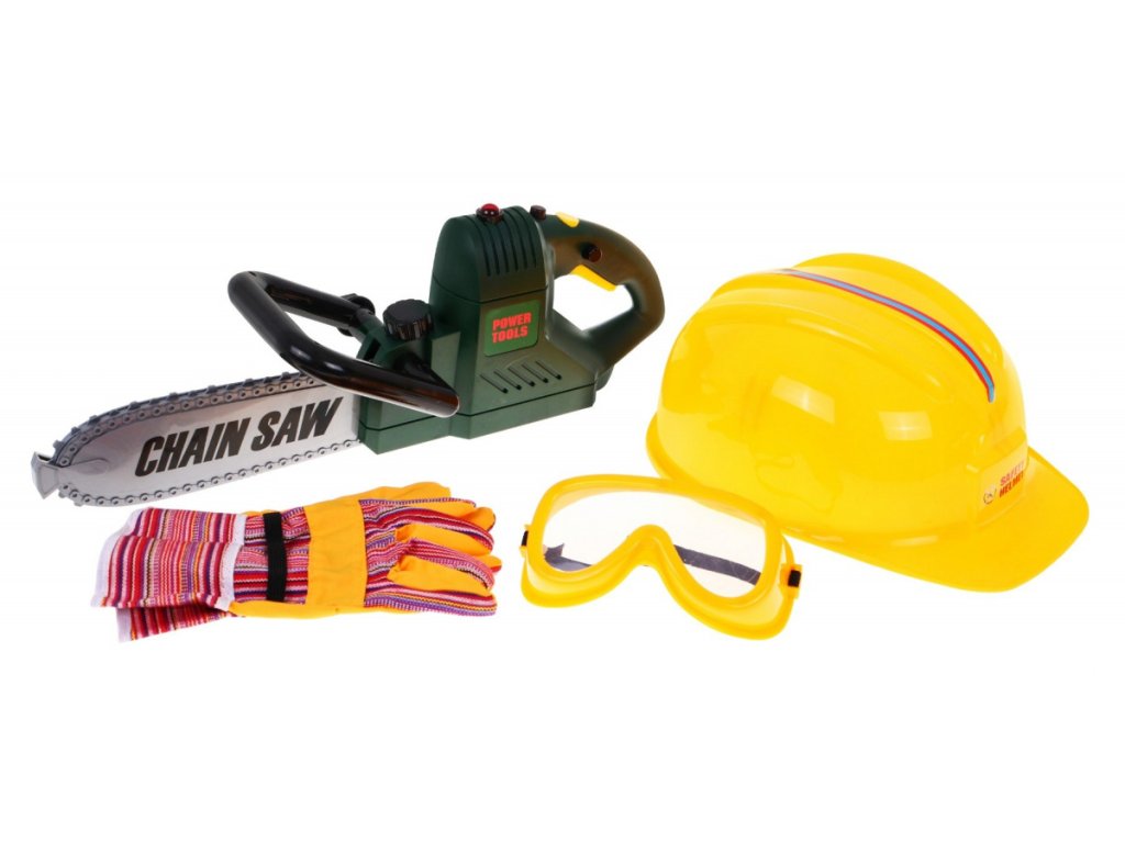 Descriptions | Large chainsaw set, gloves, goggle and helmet |