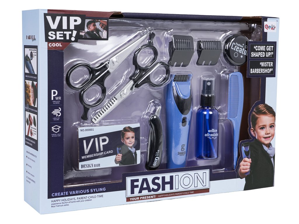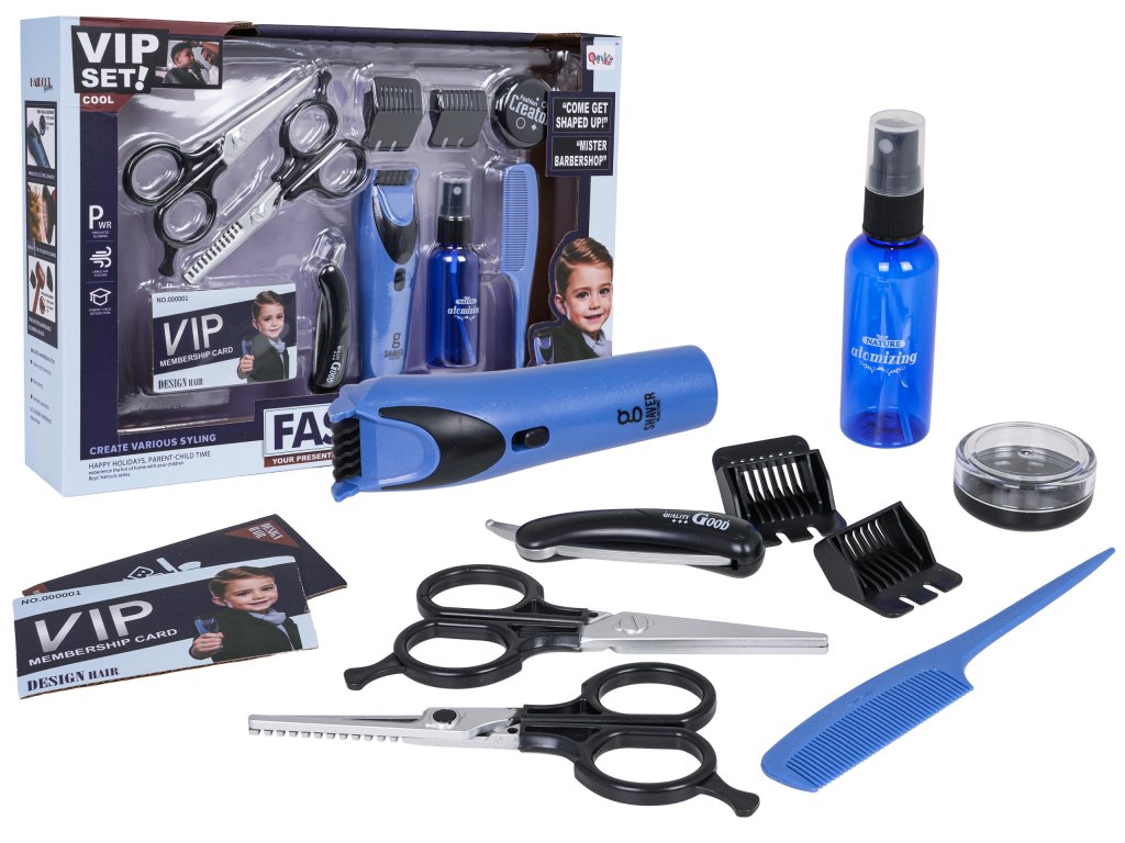 A well-equipped barber kit for children aged three and up. The 11-piece set is made of the highest quality materials, ensuring long-lasting use. The set includes a clipper, two types of scissors, a razor, two clipper attachments, two types of beard care containers, a comb, and two VIP cards. With this comprehensive set, your child will be able to enjoy cutting, styling, and creating hairstyles. The clipper features sound effects and moving blades. It is powered by 2 x 1.5V AAA batteries (not included). Set features: - suitable for children from three years of age, - made of the best quality materials, - rich equipment will make your child feel like a real barber, - the razor generates operating noises and has moving blades. |
