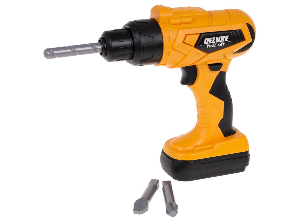 - suitable for children from 3 years of age, - made of the best quality plastic, - richly equipped with up to 20 elements, - the drill-driver is battery-powered, has replaceable bits, a removable battery, screws and unscrews, and produces sounds typical of this tool. |