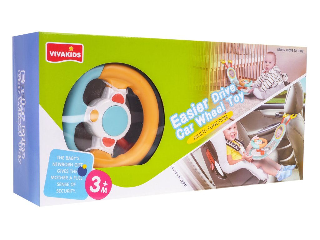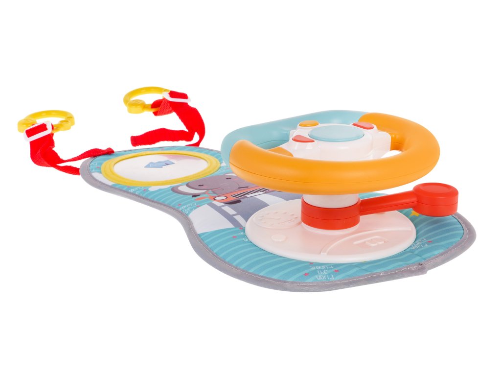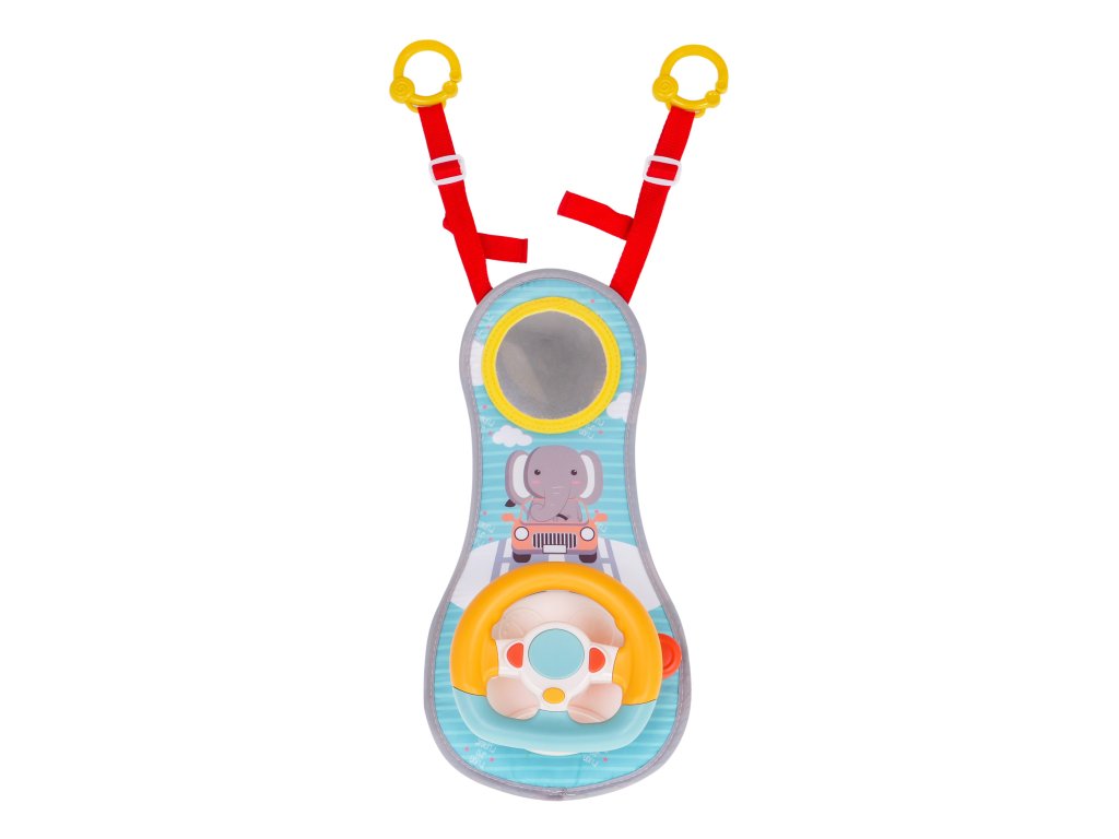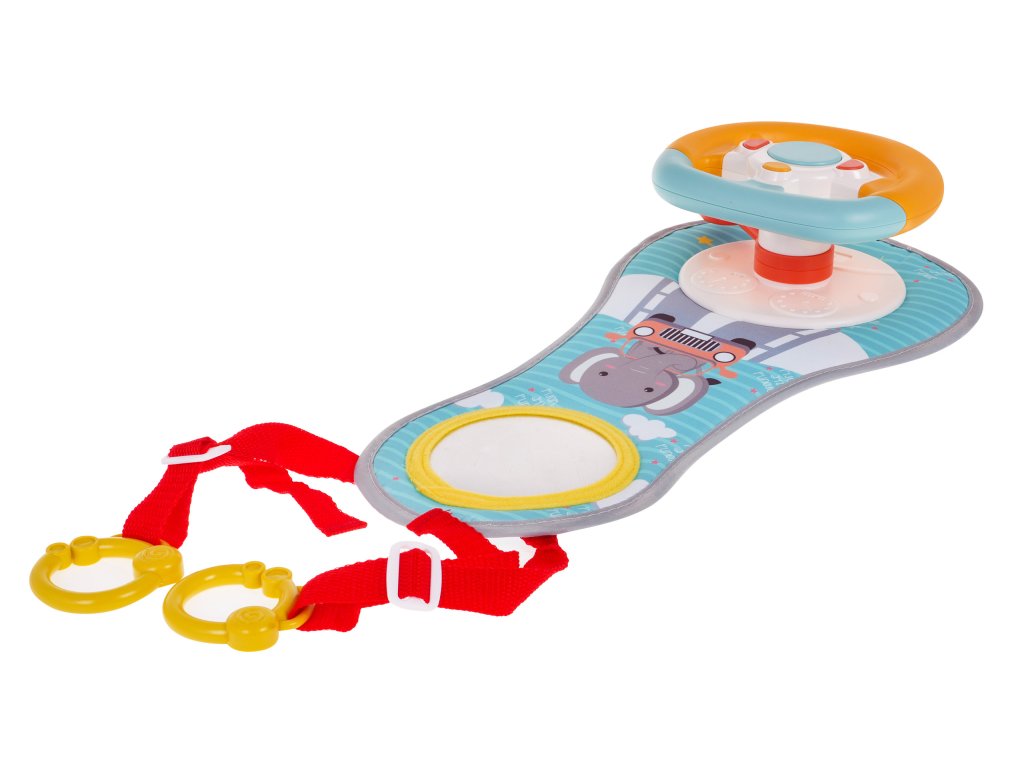 An interactive set for children from 18 months of age will make your child's time more enjoyable while traveling. Your toddler will feel like a real driver and will be able to imitate his parent's movements while driving. The set is intended for forward-facing infants only and should not be used with rear-facing infants. The set easily attaches to the seat headrest. The toy stimulates the development of the child's senses through sounds and lights. The toy is powered by 3 x AA 1.5V batteries (not included). |