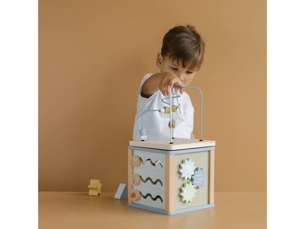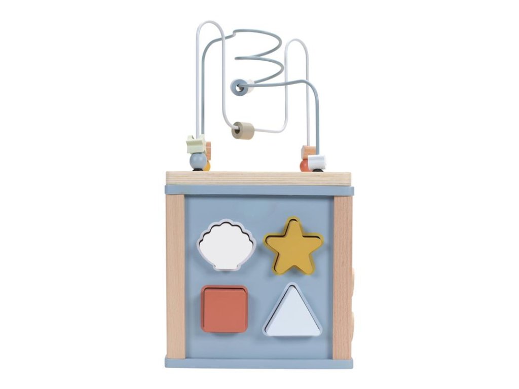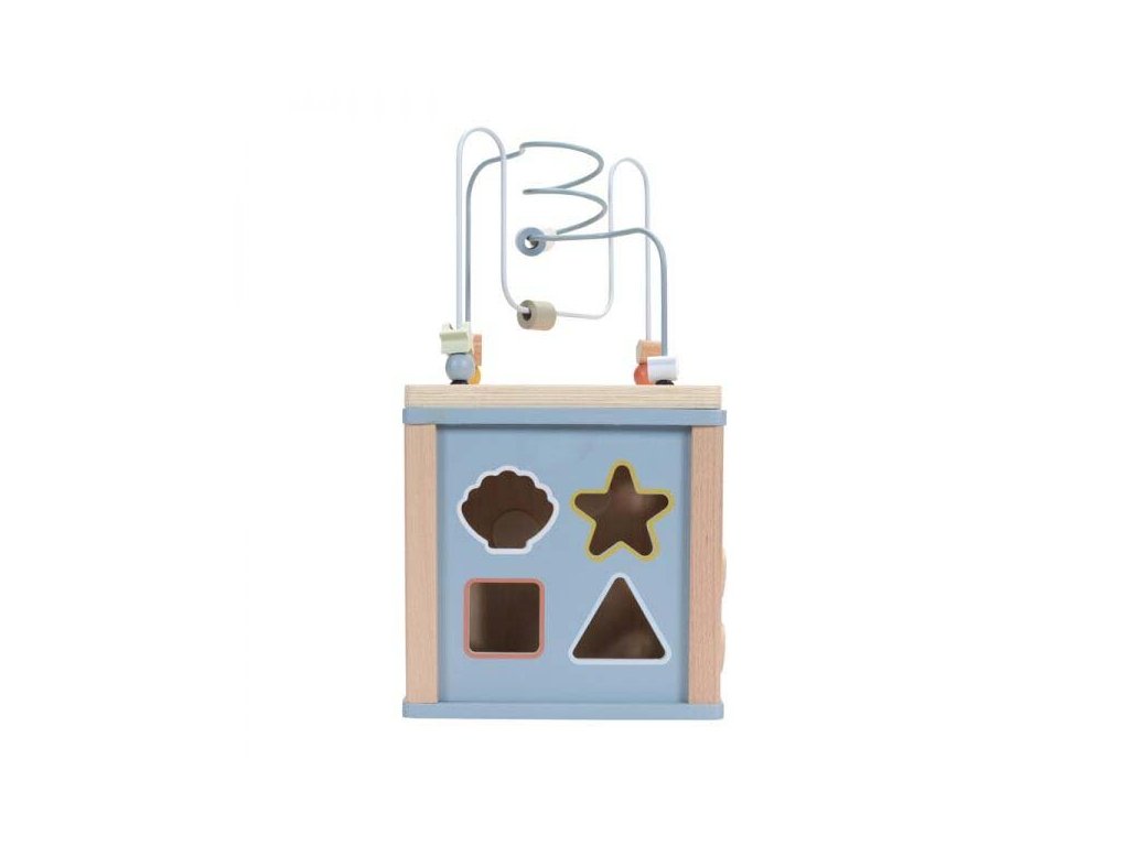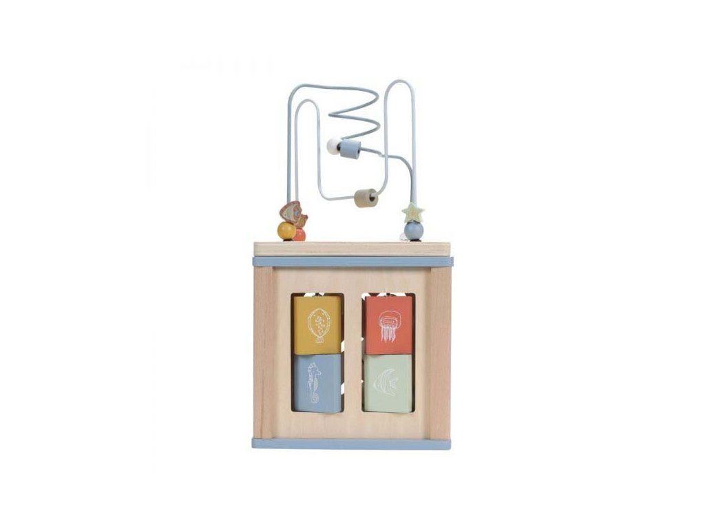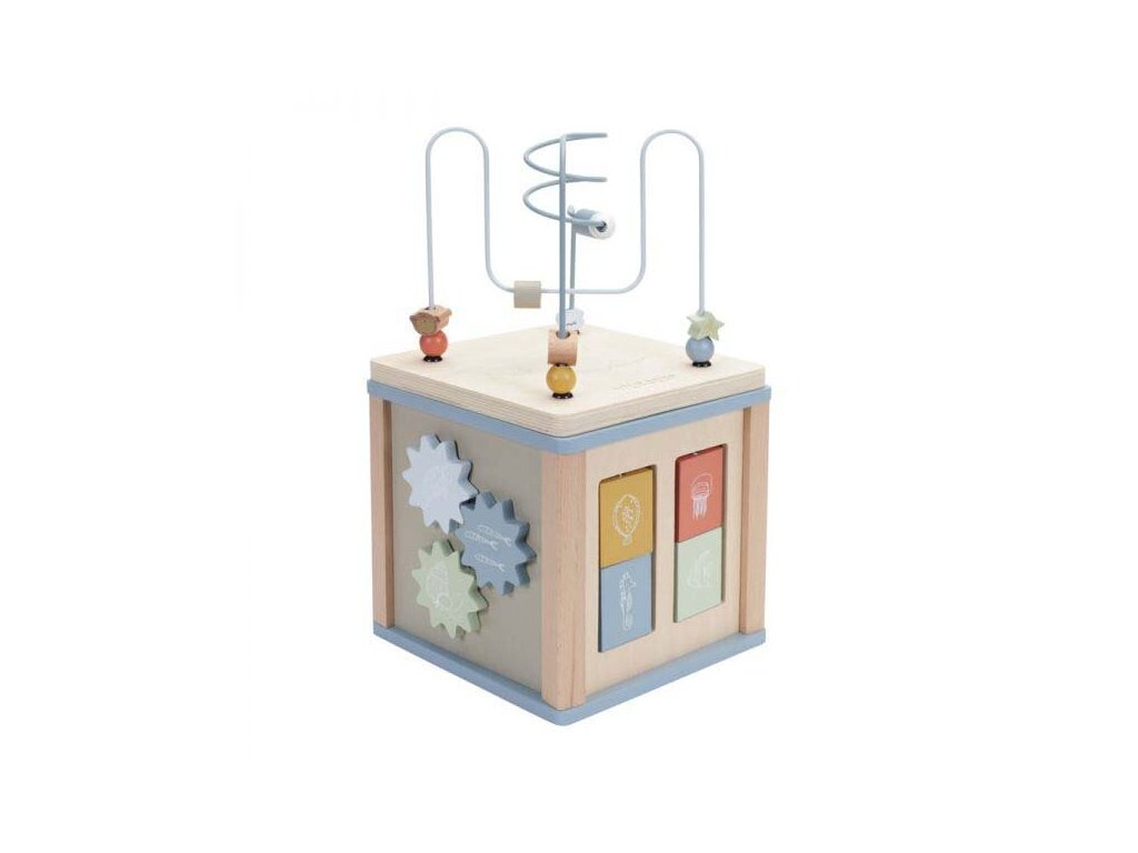 Little Dutch dřevěná hrací edukační kostka s růžnými motivy, nabízí množství pohyblivých různorodých aktivit, které zajistí vašemu dítěti hodiny zábavy.