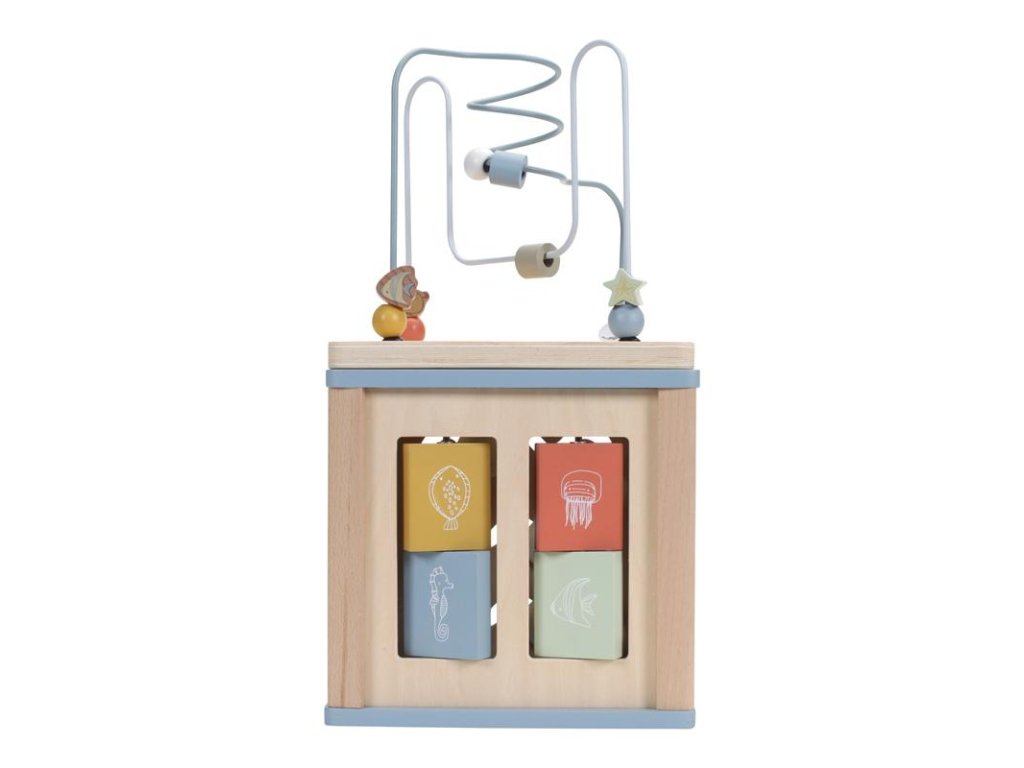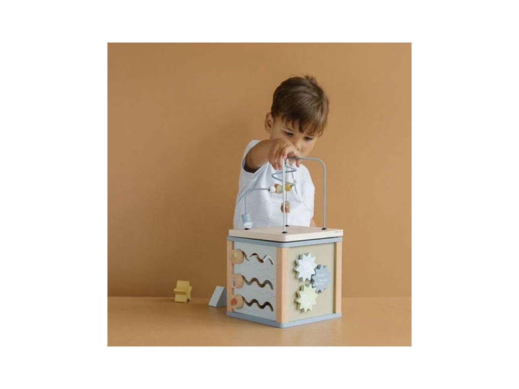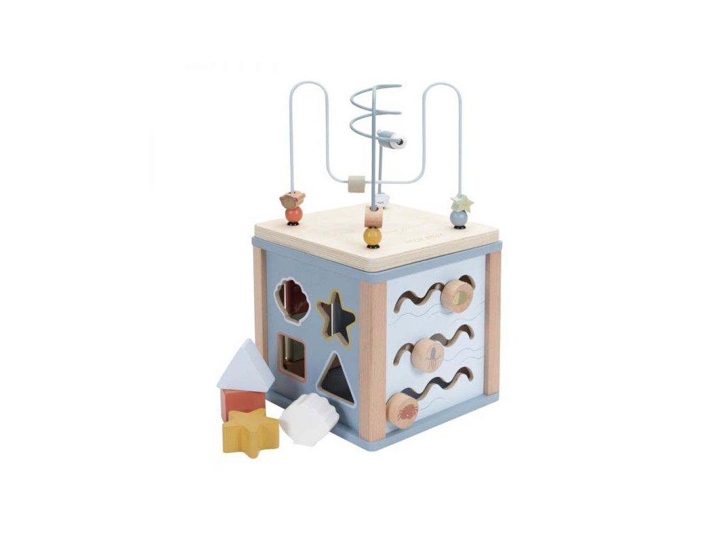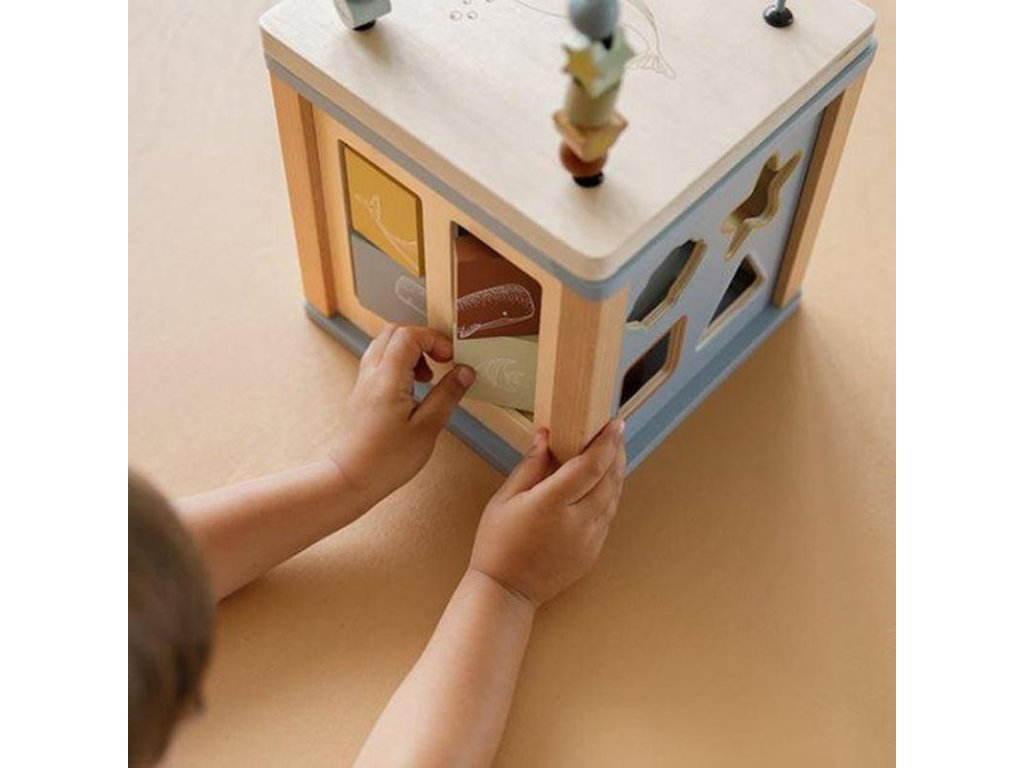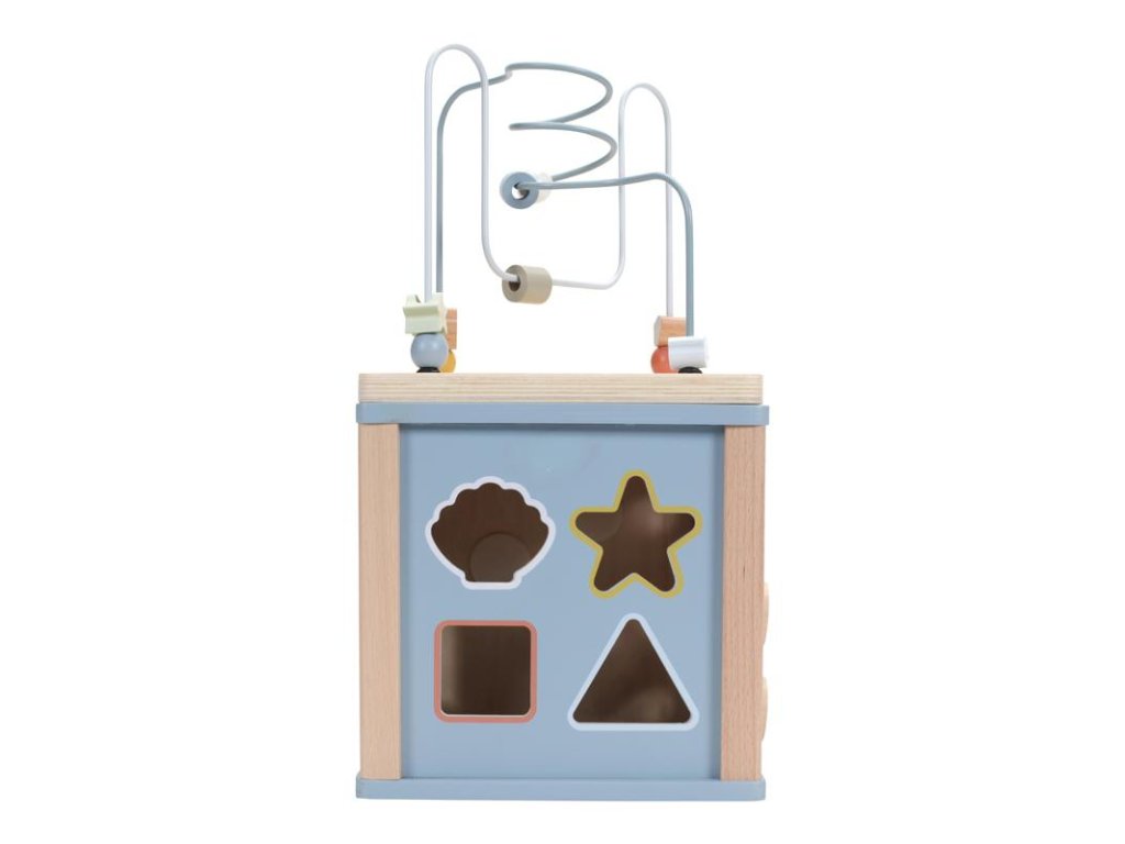 Little Dutch dřevěná hrací edukační kostka s růžnými motivy, nabízí množství pohyblivých různorodých aktivit, které zajistí vašemu dítěti hodiny zábavy.