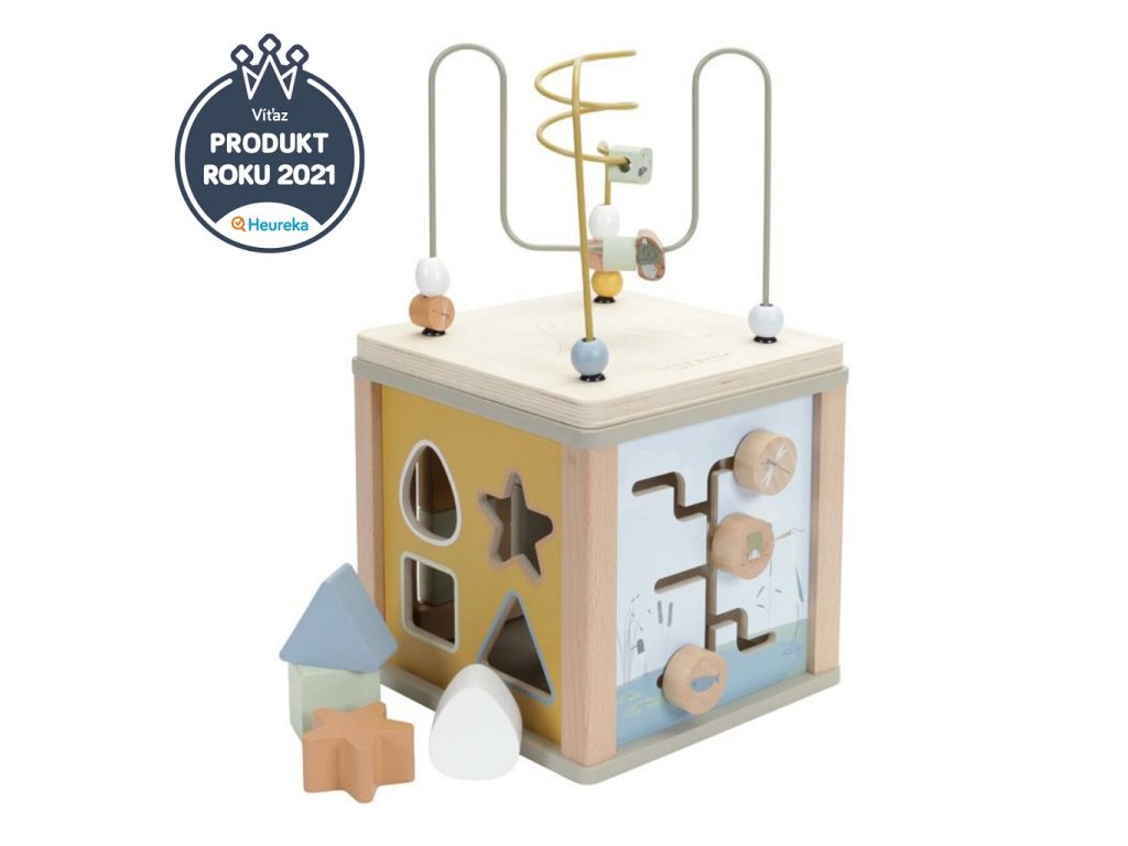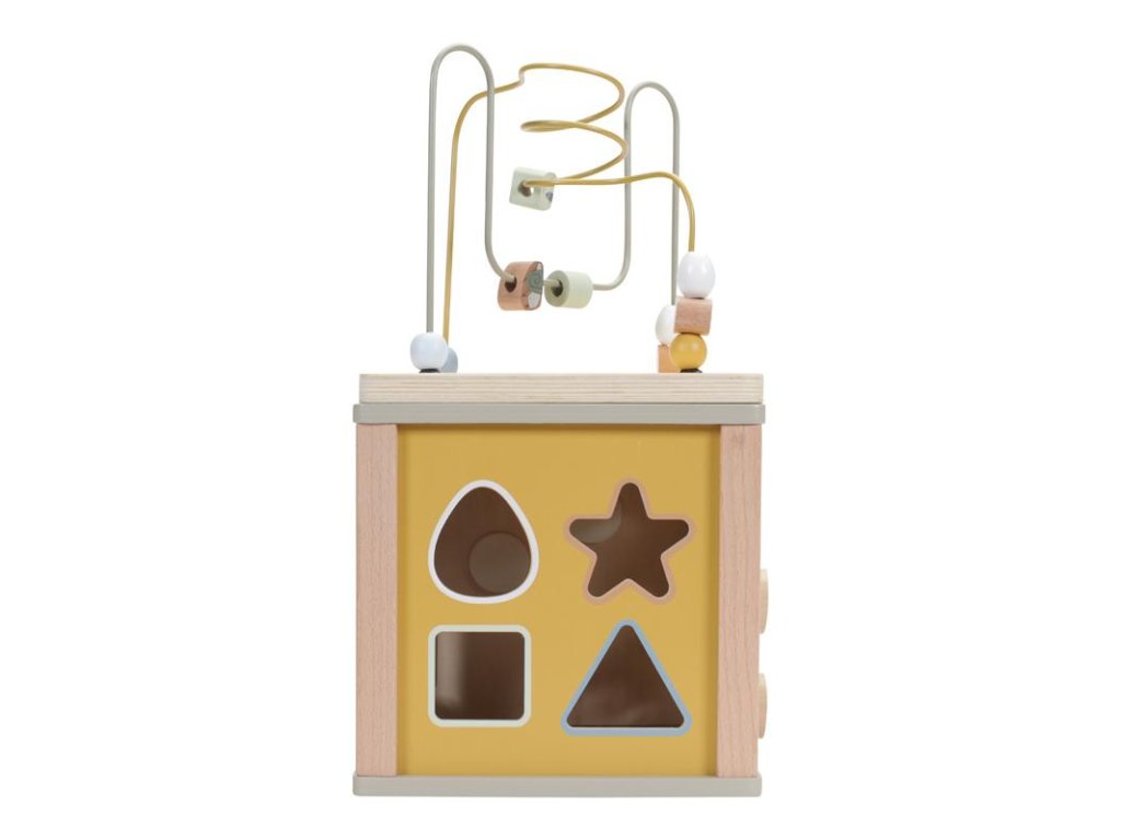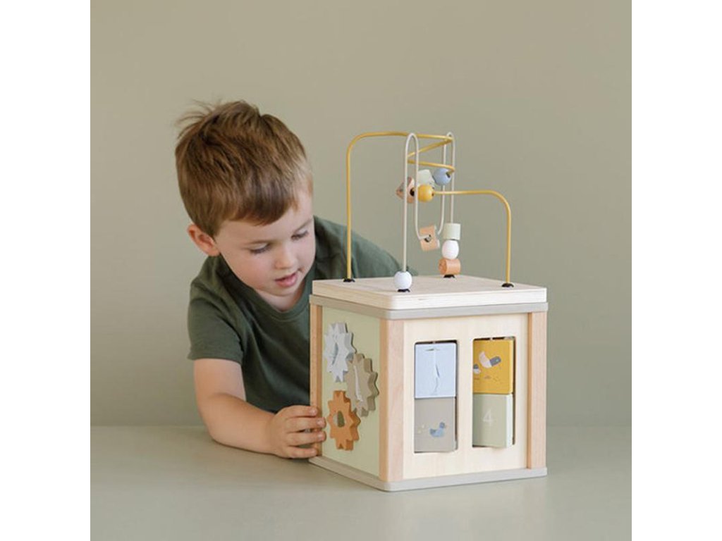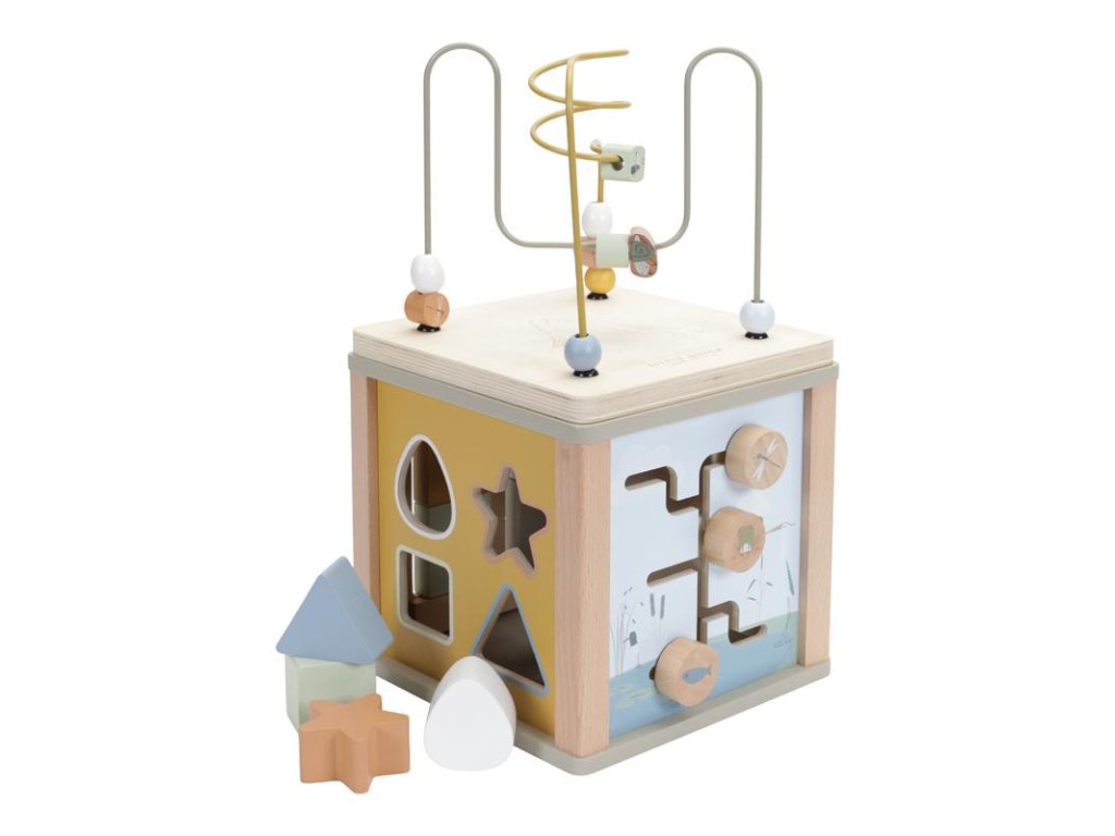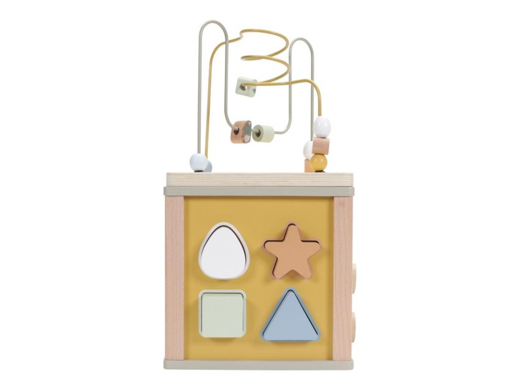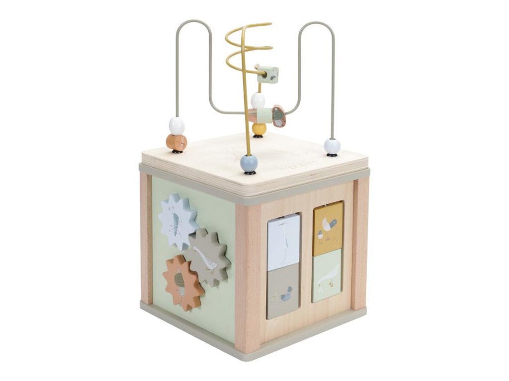 Little Dutch dřevěná hrací edukační kostka s růžnými motivy, nabízí množství pohyblivých různorodých aktivit, které zajistí vašemu dítěti hodiny zábavy.