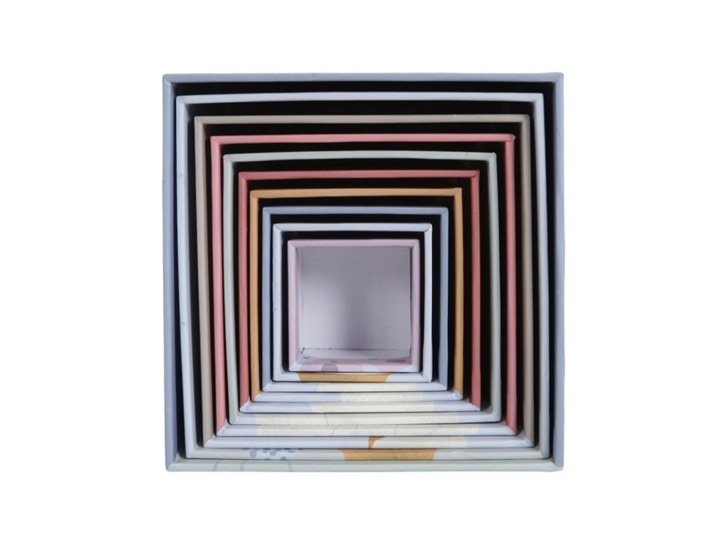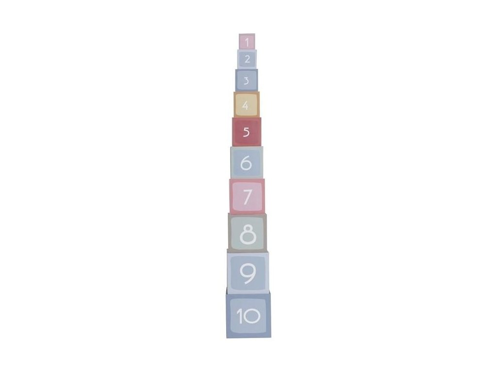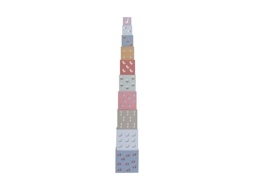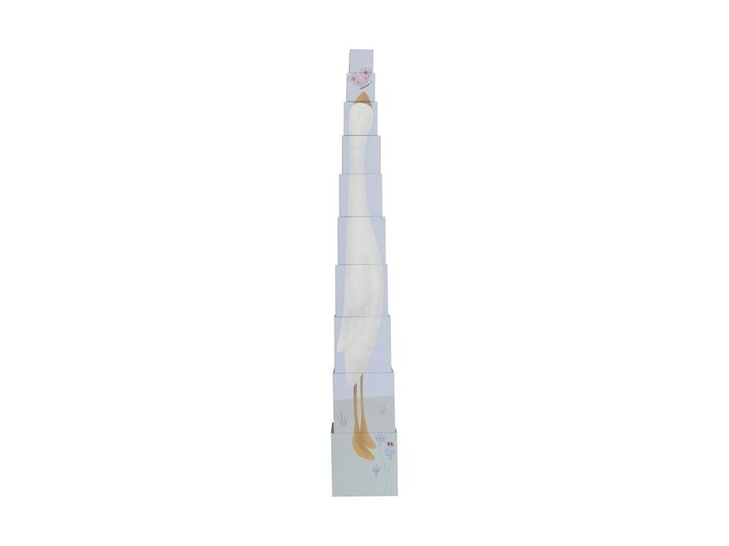 Kostky jsou vyrobeny z pevného kartónu a jsou odolné proti nárazům. Nejmenší kostka má 5 cm a největší má 14 cm Od 18 měsíců. Výška věže je 95,6cm