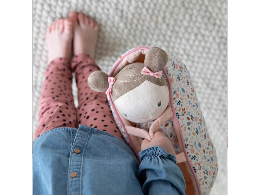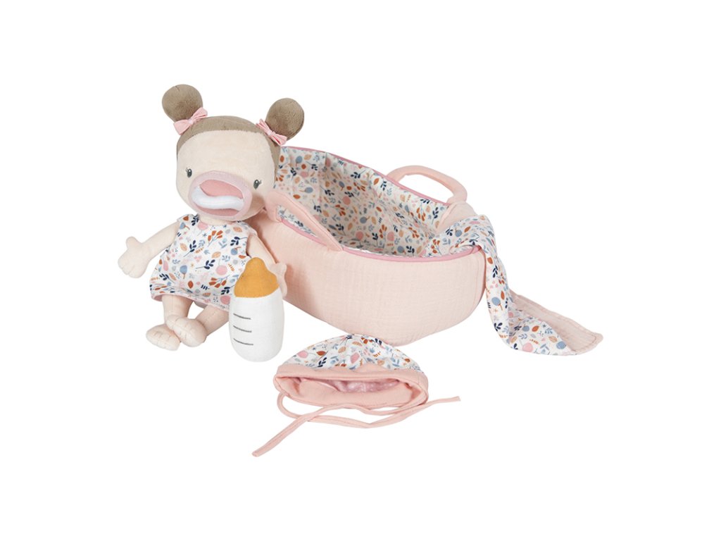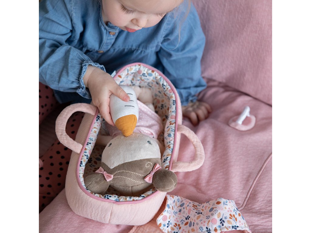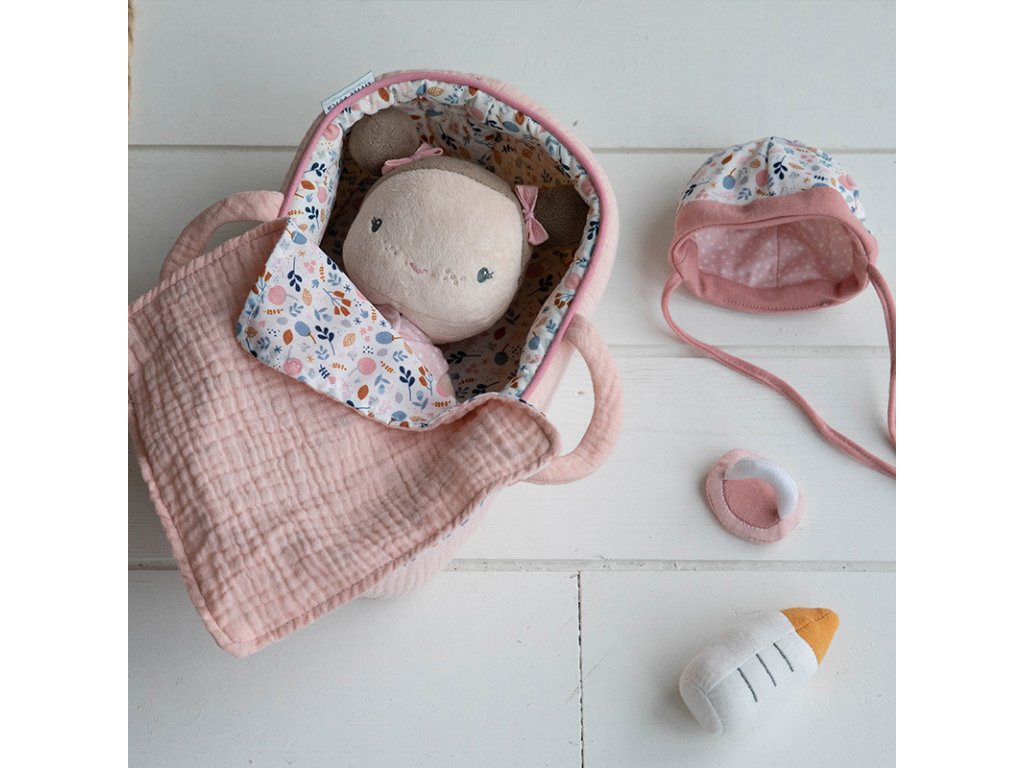 Seznamte se s miminkem Baby Rosou. Něžná plyšová panenka se chce mazlit chovat a díky praktickému košíku na spaní si ji můžete vzít kamkoli s sebou. Péče o takové miminko dá zabrat, a děti se tak hravou formou učí odpovědnosti. Rosu je potřeba pravidelně nakrmit nebo jí dát dudlík. Nesmí se zapomenout na výměnu plenky, venku je potřeba vždy navléknout čepičku a přikrýt Rosu dekou, aby jí nebyla zima.