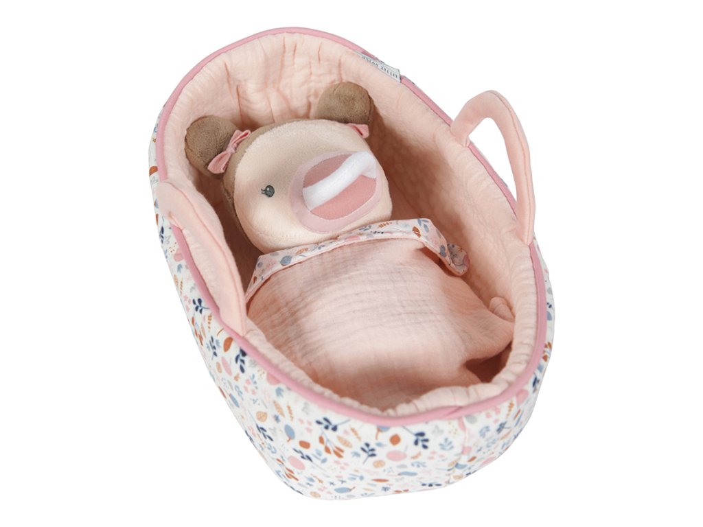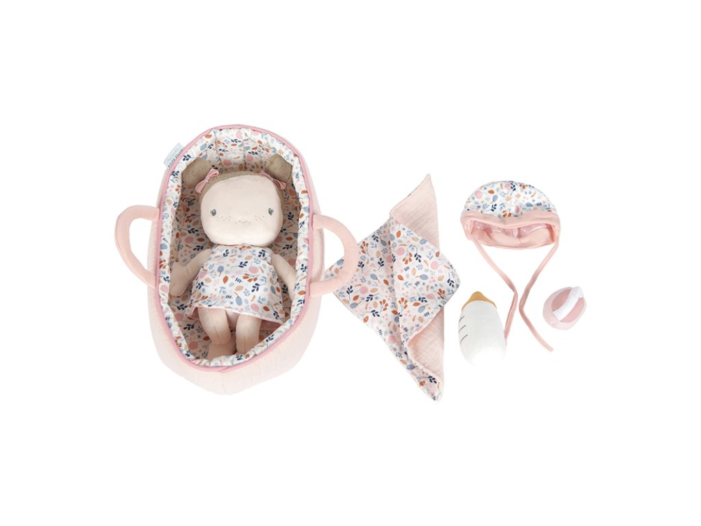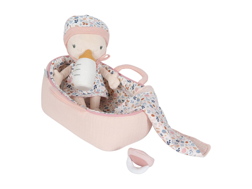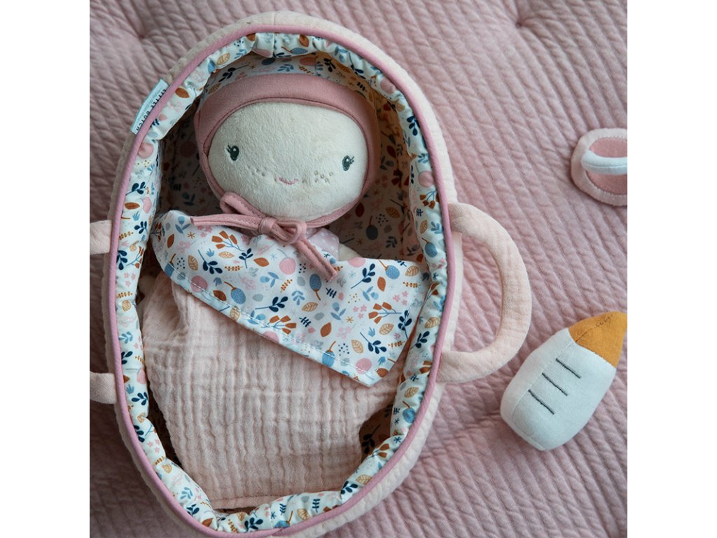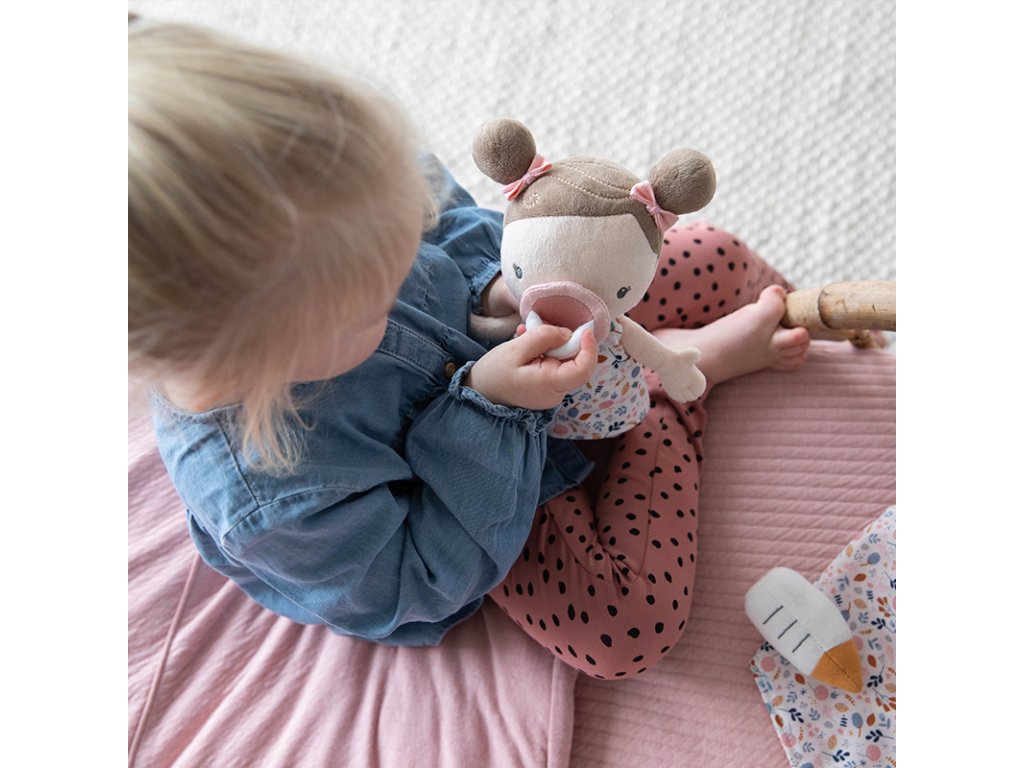 Seznamte se s miminkem Baby Rosou. Něžná plyšová panenka se chce mazlit chovat a díky praktickému košíku na spaní si ji můžete vzít kamkoli s sebou. Péče o takové miminko dá zabrat, a děti se tak hravou formou učí odpovědnosti. Rosu je potřeba pravidelně nakrmit nebo jí dát dudlík. Nesmí se zapomenout na výměnu plenky, venku je potřeba vždy navléknout čepičku a přikrýt Rosu dekou, aby jí nebyla zima.