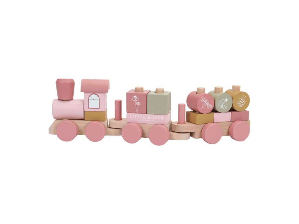 Dřevěný vláček z masivu s krásným tištěným designem. Obsahuje různé tvary a barvy kostek, které zdokonalují motoriku, kreativitu a vzdělávání dítěte.