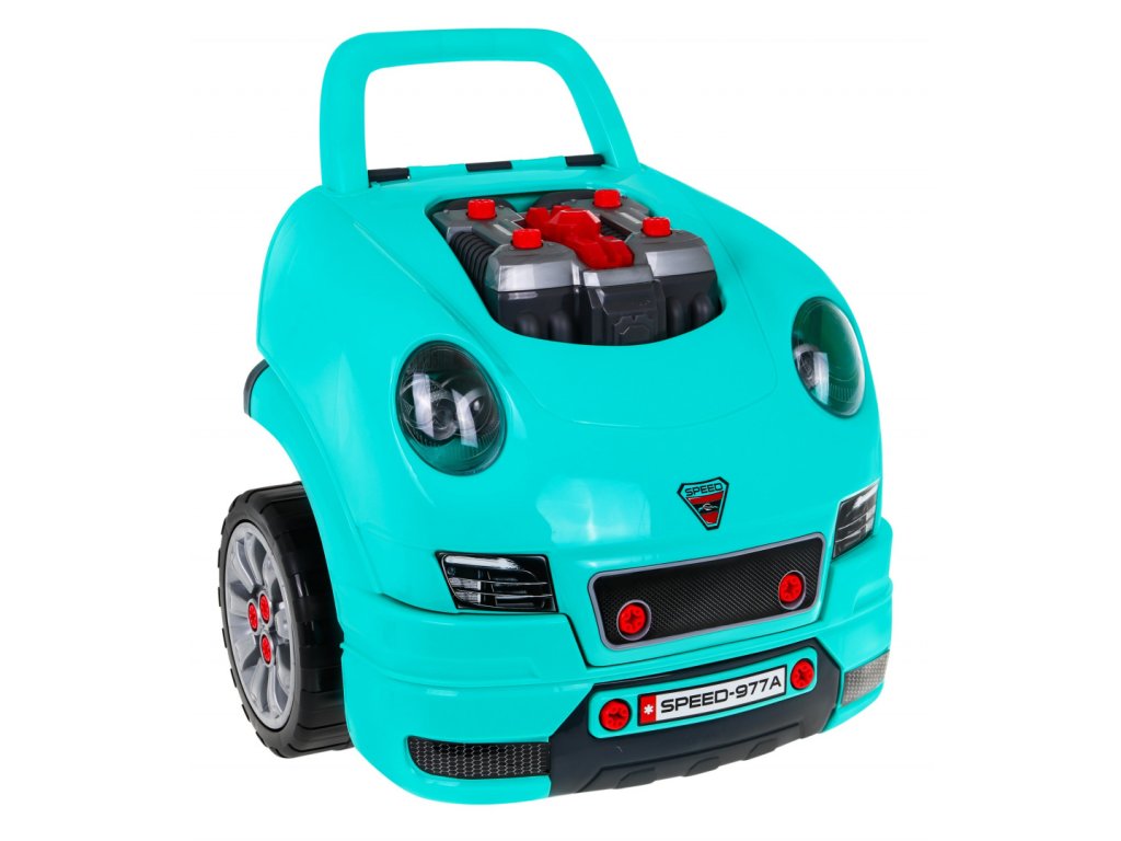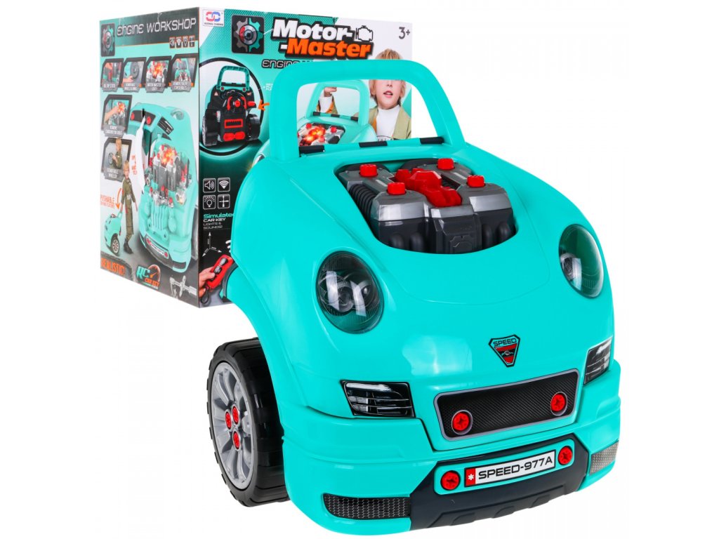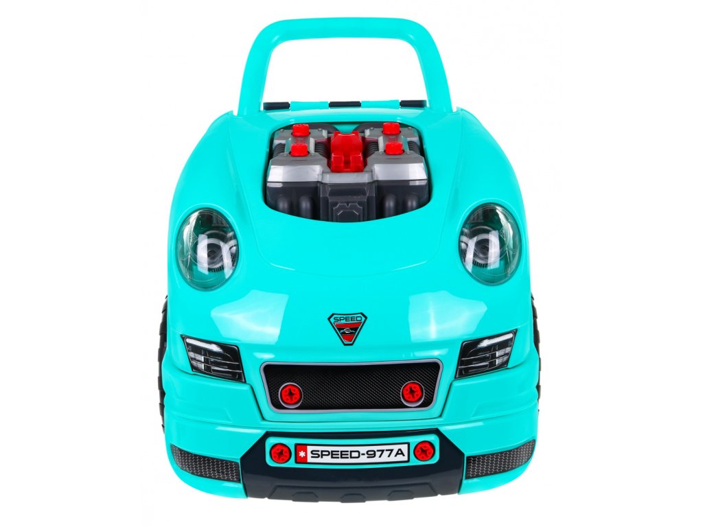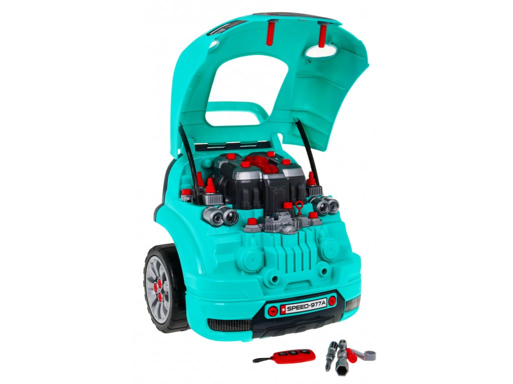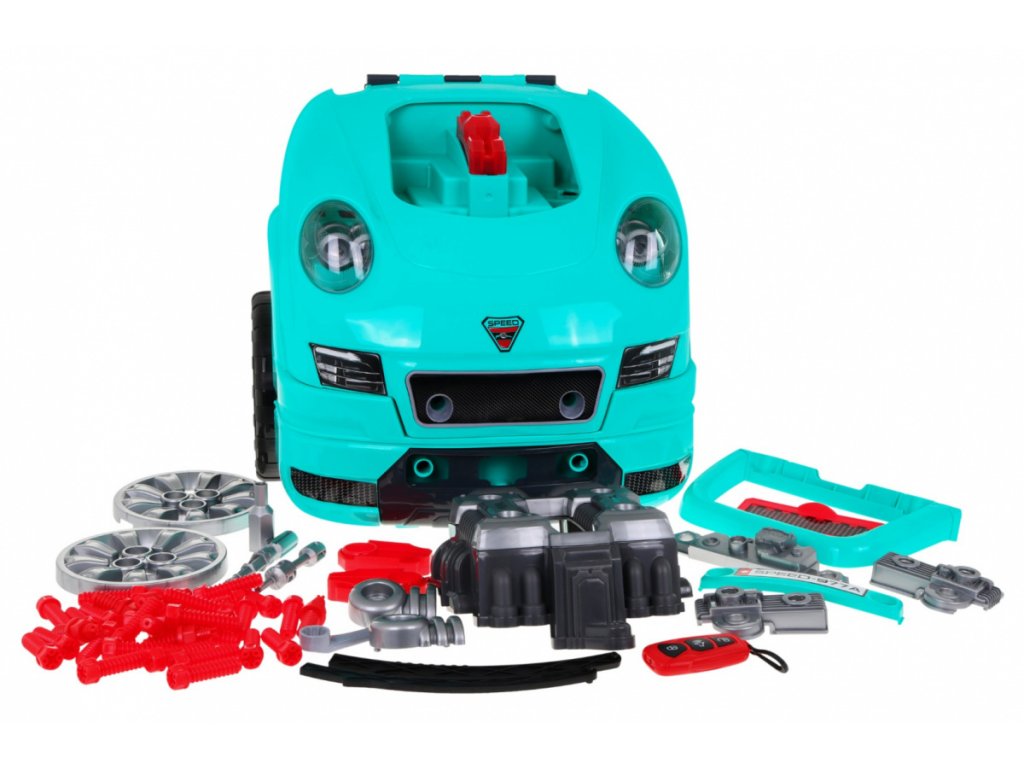 The set includes 61 elements, including: - the front part of the vehicle to be repaired, - wheels with hubcaps, - screws, - tools, - engine parts, - remote, - stickers, - instruction. |
