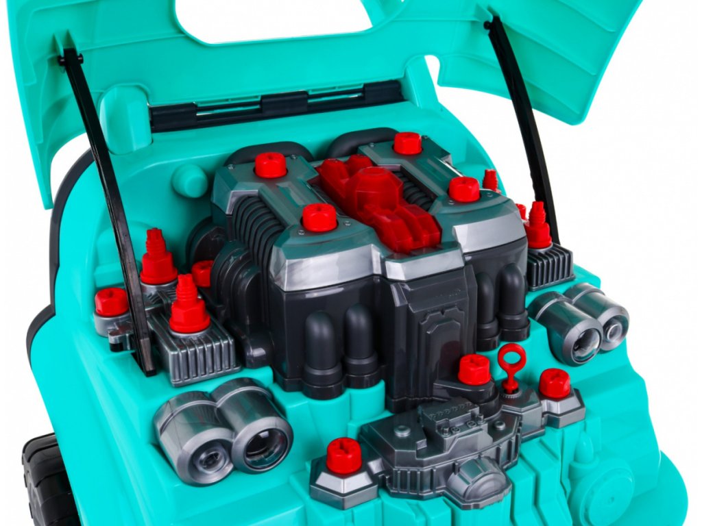 An absolute hit, the front of the car with a lifting hood, steering wheel and dashboard on the other side. The set is intended for children from 3 years of age. There are tons of components for assembly and disassembly under the hood. Your child will be able to repair the engine, spark plugs and even wheels. On the dashboard there is a vehicle start button with engine sounds, a steering wheel with a horn and an emergency beacon. Under the steering wheel there is a compartment where you can hide all the necessary tools, screws and knobs. The set includes a remote control that allows you to control the light modules (glowing headlights and the top of the engine) and sound modules (the sound of opening and closing the car, horn). The toy has a convenient carrying handle. Powered by 3 x AA 1.5 V batteries - auto (not included), CR2025 3V - remote control (included). | |