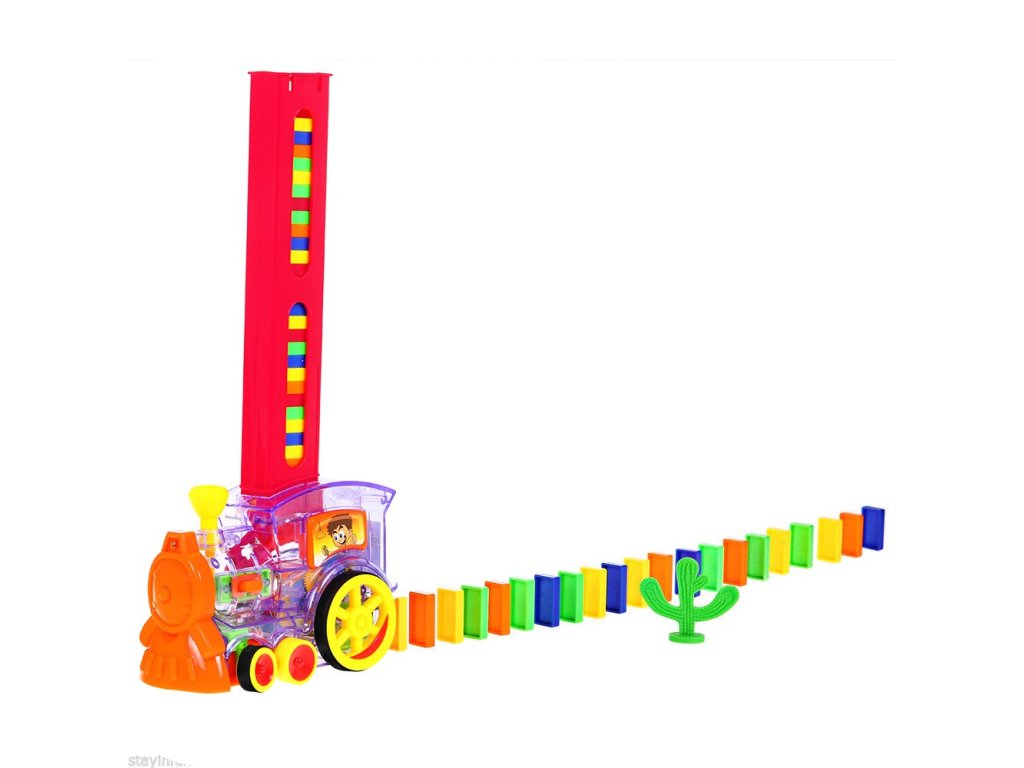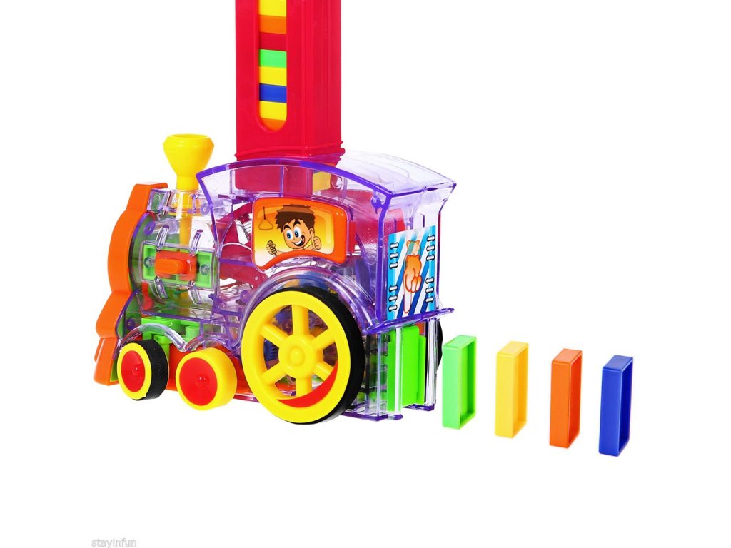 - colorful choo-choo, - domino blocks - 100 pieces, - domino dispenser, - 2 paper models. |