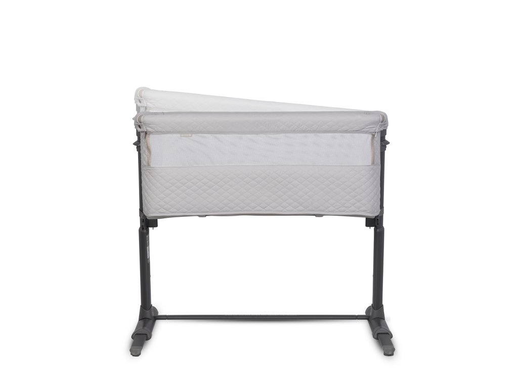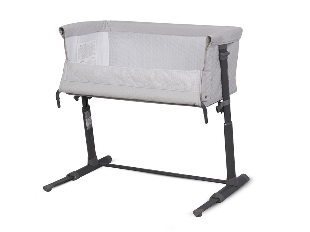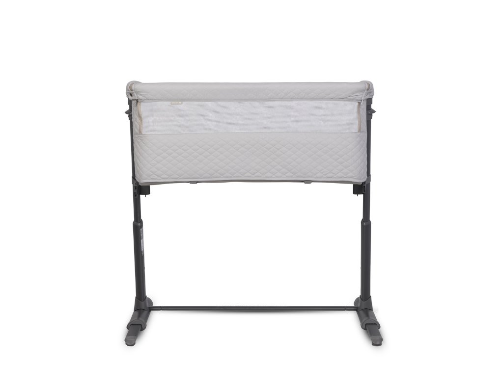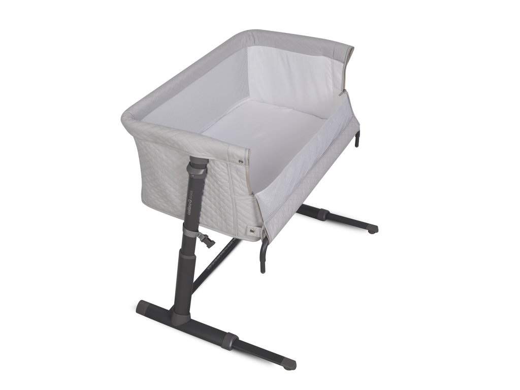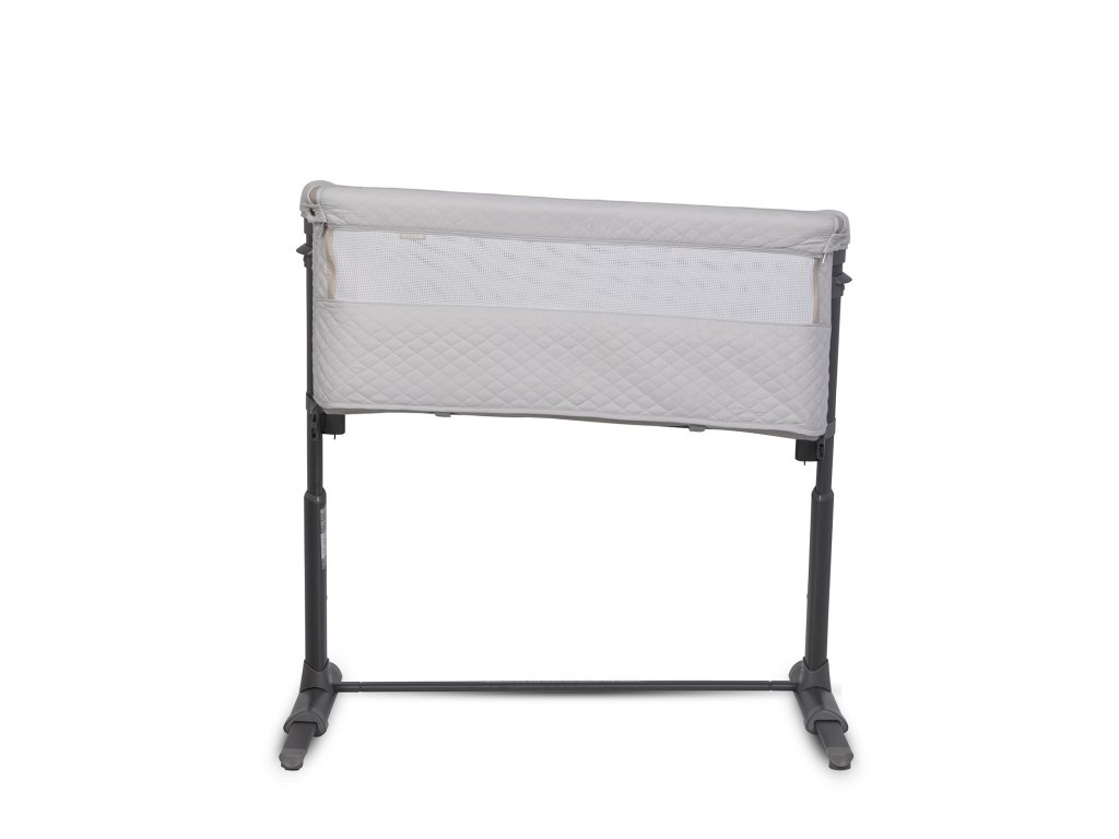 Společná lůžková postýlka se díky systému pásů a až 9 výškovým nastavením pevně přitiskne k posteli rodičů. Charakteristický tvar připomínající písmeno "L" umožňuje ještě lepší přizpůsobení přistele k posteli. Automatický teleskopický systém nastavení délky spodních distančních prvků pomůže přesně nastavit náhradní lůžko i na postele bez prostoru na podlaze (pokud je postel rodičů těsně vedle podlahy).
