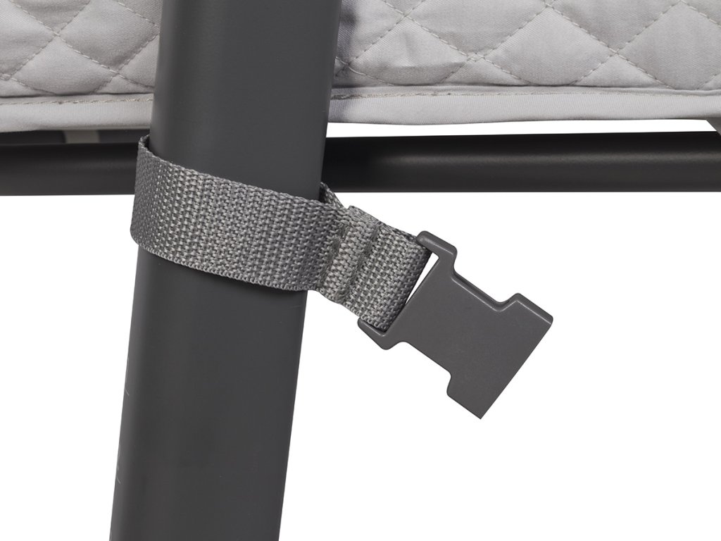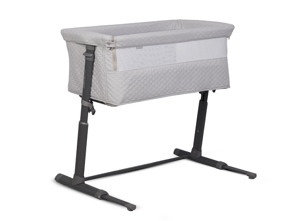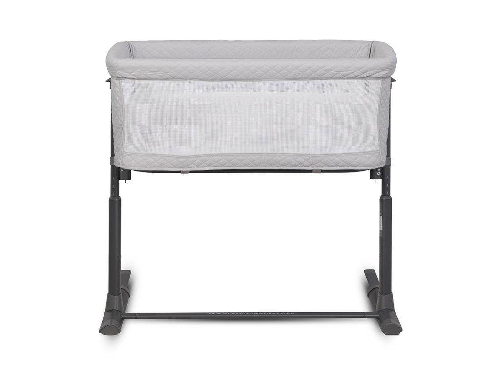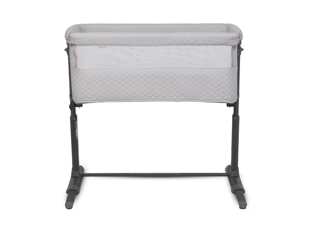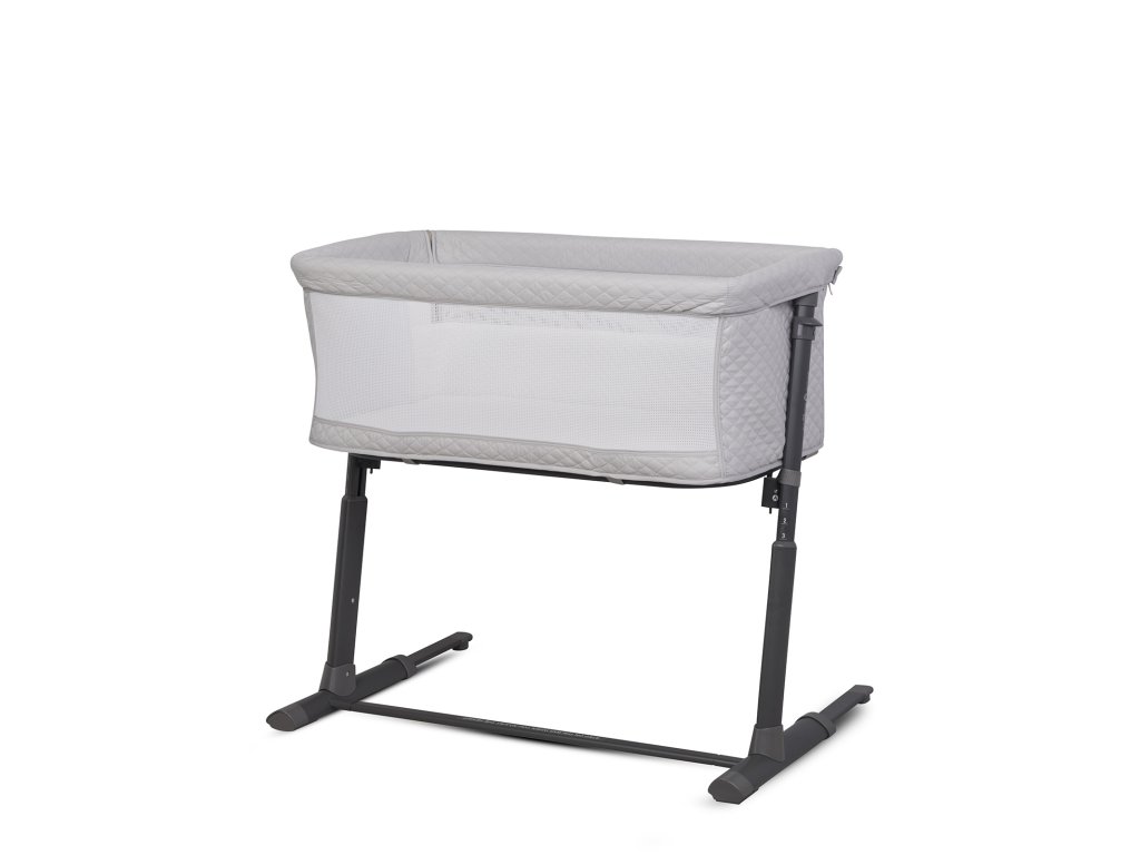 Společná lůžková postýlka se díky systému pásů a až 9 výškovým nastavením pevně přitiskne k posteli rodičů. Charakteristický tvar připomínající písmeno "L" umožňuje ještě lepší přizpůsobení přistele k posteli. Automatický teleskopický systém nastavení délky spodních distančních prvků pomůže přesně nastavit náhradní lůžko i na postele bez prostoru na podlaze (pokud je postel rodičů těsně vedle podlahy).