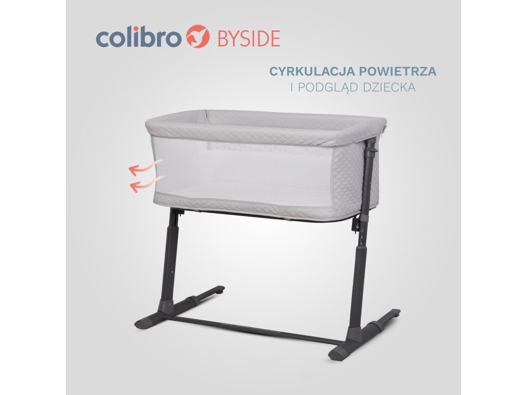 COLIBRO BYSIDE co-sleeper postýlka – přídavná postel COLIBRO co-sleeper postýlka je ideální jak jako běžná postýlka pro individuální spaní, tak jako přídavná postel pro dítě v rodičovské posteli. Co poskytuje postýlka pro spolu-lůžko? Díky tomu může dítě strávit noc s rodiči bezpečně a pohodlně.