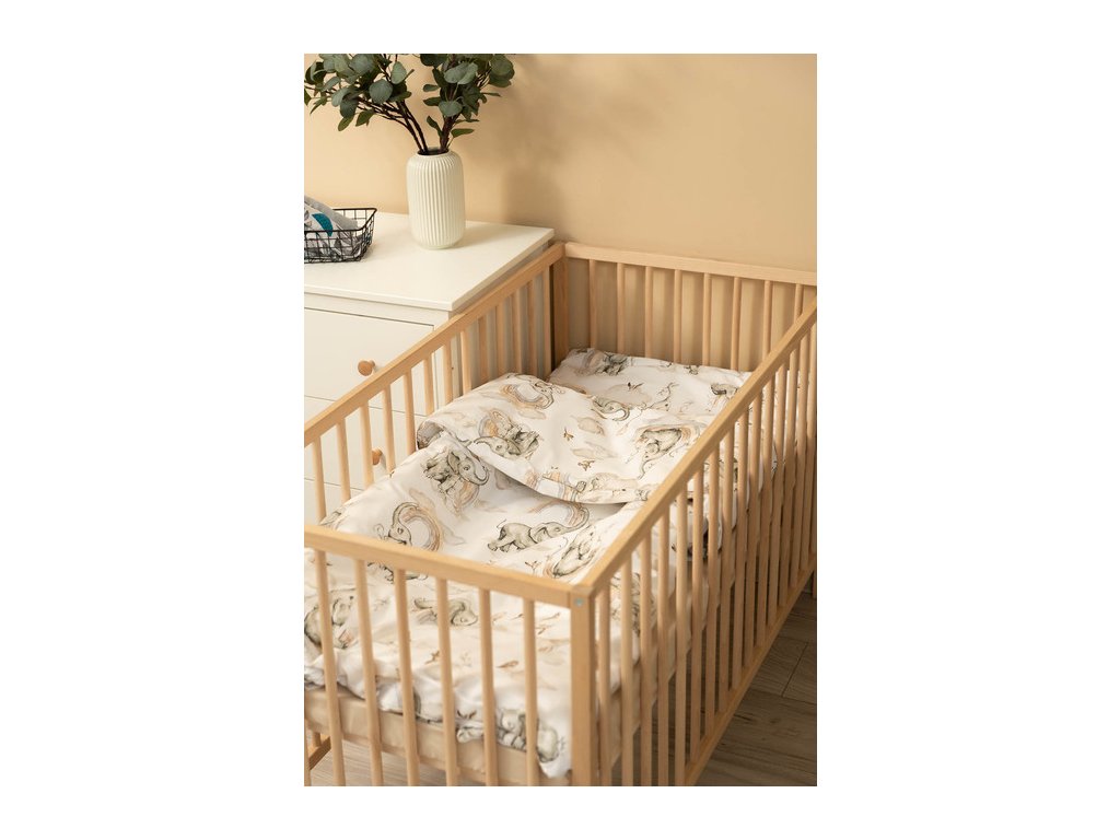 Sada obsahuje přikrývky a polštář a prostěradlo s gumičkou. Je vyroben z příjemné na dotek a odolné 100% bavlny. Je určen pro dětské postýlky 120x60 cm. Přikrývky a povlaky na polštáře jsou na zip. List má všitý elastický pás. Barevné kombinace kombinující vzorovanou bavlnu s monochromatickým listem dokonale zapadnou do každého dětského pokoje.