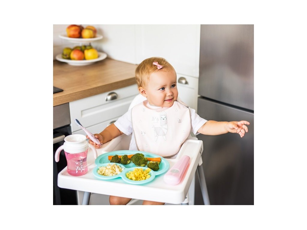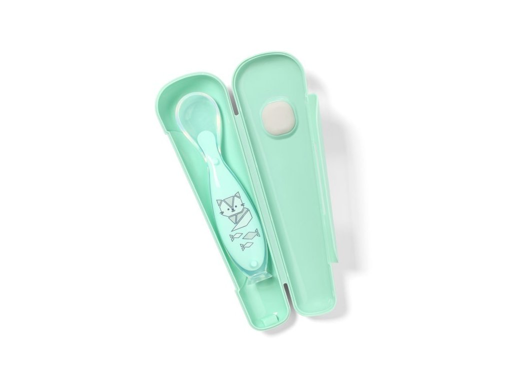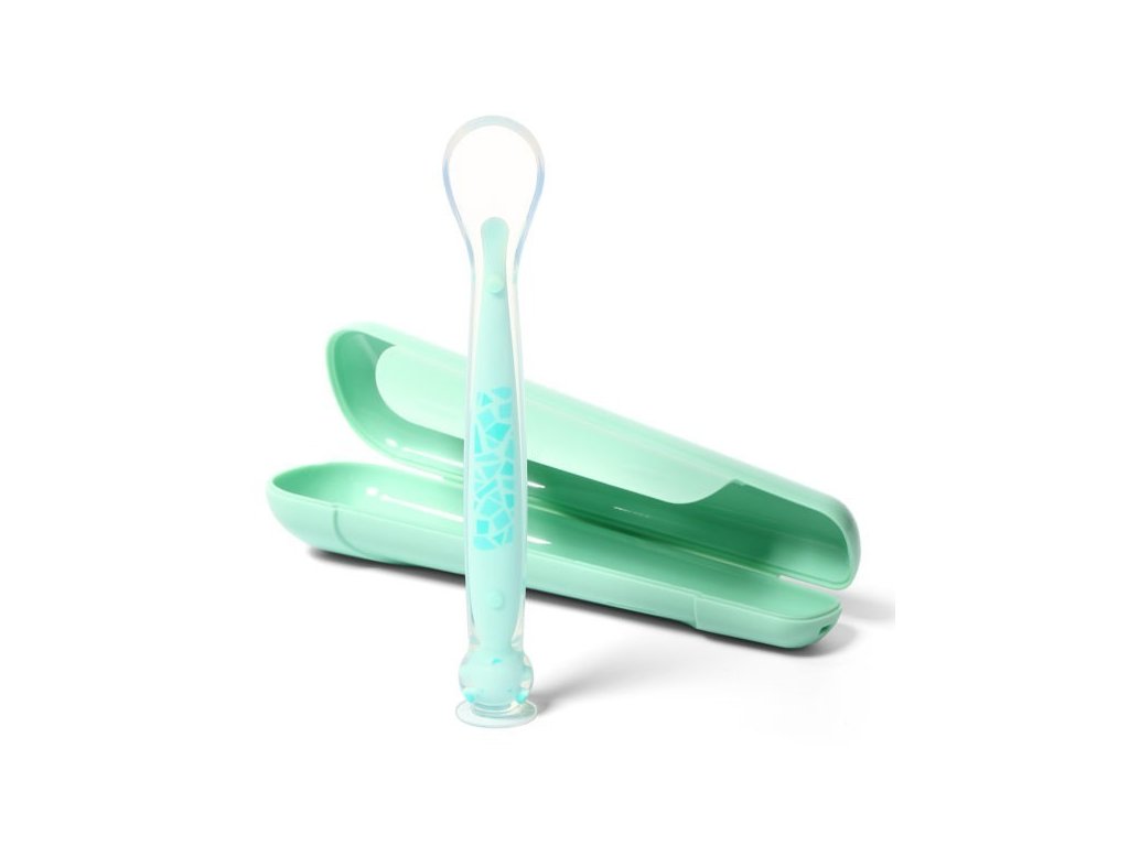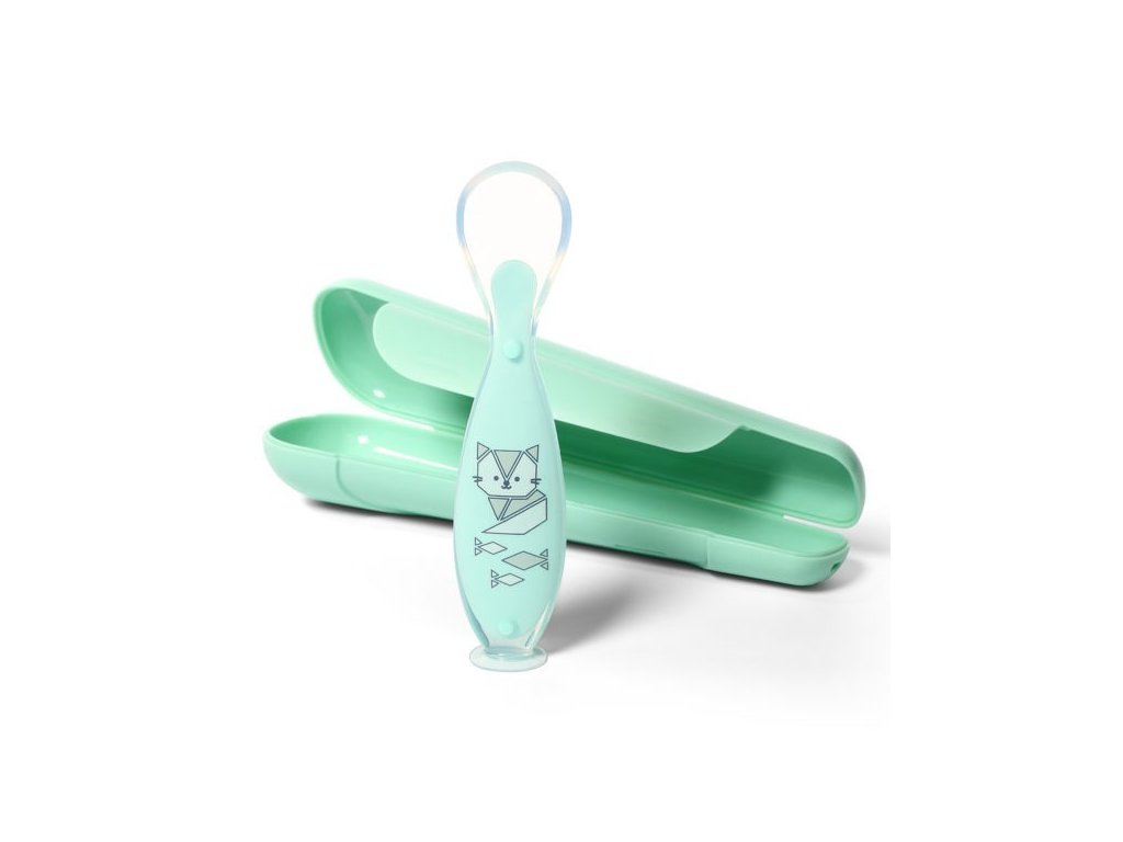 Silikonová lžička s přísavkou v pouzdře je vynikajícím produktem pro domácnost, na procházku nebo na cestách. Je správně tvarovaný, ideální i při učení samostatného stravování. Vyrobeno z nejkvalitnějšího silikonu určeného pro styk s potravinami.