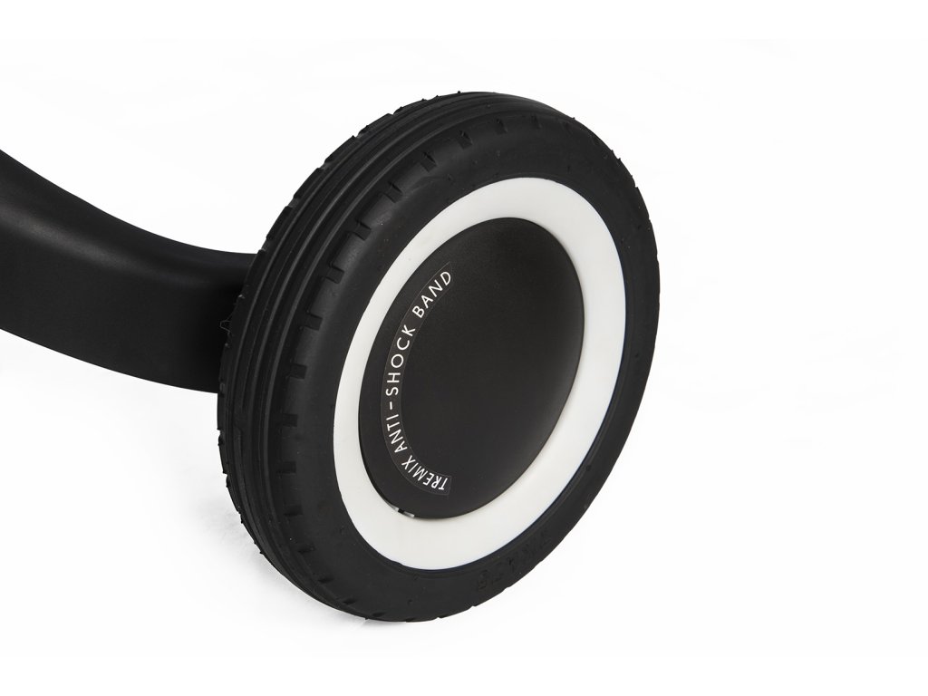 - Gumové pneumatiky s běhounem pro vynikající přilnavost. Pozor na podobné výrobky s koly z pěny EVA, která neposkytuje přilnavost na mokrém a kluzkém povrchu!
