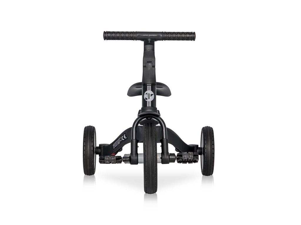 Odrážedlo – pro děti od 3 do 4 let. Díky inovativnímu patentovanému systému, stisknutím pouhých 3 tlačítek a nerozebráním žádných prvků, přeměníte tříkolku na praktické vzdělávací odrážedlo. Jednoduše spojte zadní kola do jednoho stabilního dvojitého kola a demontujte pedály.