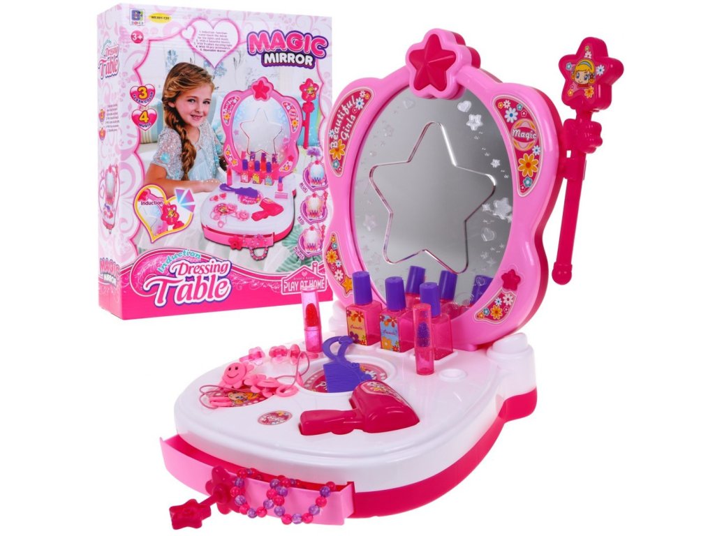 - dressing table with mirror - Magic wand, - dryer - comb - a key to close and open the drawer, - 3 x perfume bottles (dummy), - 2 x bracelets, - 3 x rings, - 2 x lipstick (dummy), - 2 x hair elastics. | |