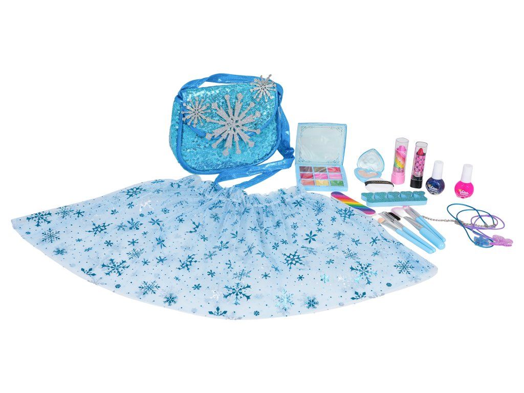 - tulle skirt approx. 30 cm long, waist approx. 20 cm x 2 to 40 cm x 2, - decorative bag approx. 18 cm x 13.5 cm x 6.5 cm, - necklace approx. 24 cm long, - palette with 9 shadows approx. 8.5 cm x 8.5 cm x 1.5 cm, - eyeshadow in a heart-shaped box, approx. 5 cm x 4 cm x 1 cm, - lipstick approx. 7.5 cm high, - nail polish approx. 5.5 cm long, - makeup brush approx. 11.5 cm long, - makeup removal sponge approx. 4.5 cm in diameter, - finger separator approx. 10 cm x 3 cm, - nail file approx. 9 cm x 2 cm, - packaging approx. 33 cm x 29.3 cm x 6.8 cm. |