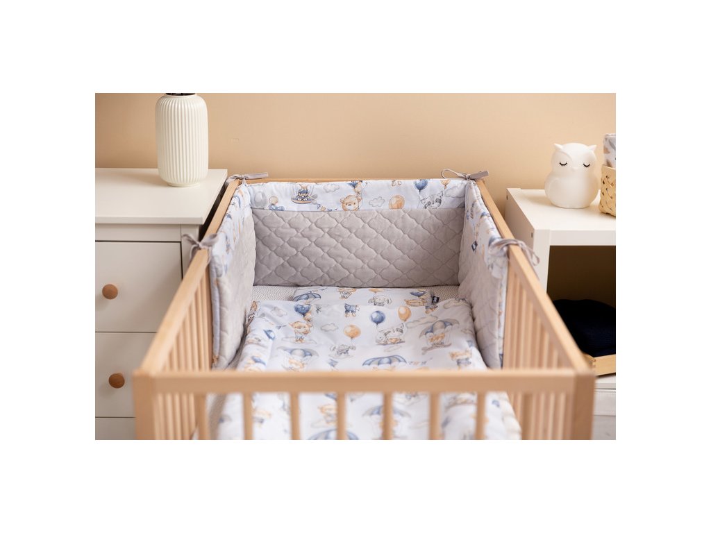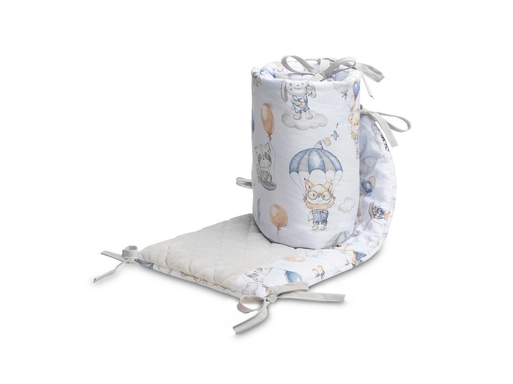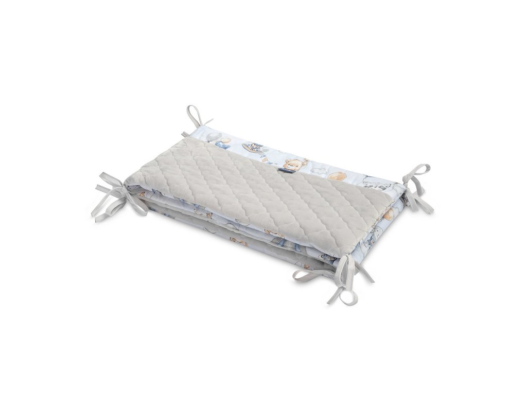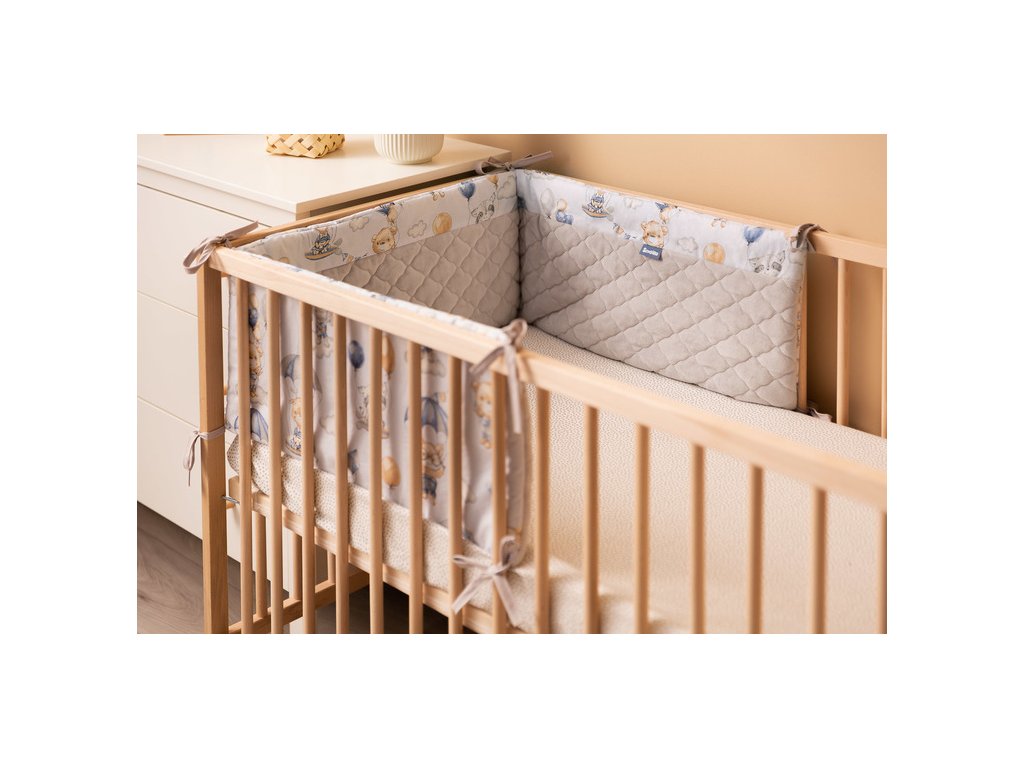 Chránič postýlky Plusz Karo je skvělým doplňkem k poštěváčku pro dítě. Výplň vejčité ochrání dítě před zraněním při pohybu po postýlce a oddělí se od studené stěny a krásné materiály zdobí dětský pokoj. Jedna strana chrániče je vyrobena z měkké bavlny s potiskem a druhá je vysoce kvalitní, příjemná na dotek plyšová. Udržování chrániče ve správné poloze je zajištěno četnými stuhami. Byl navržen pro dětskou postýlku o rozměrech 120x60 cm.