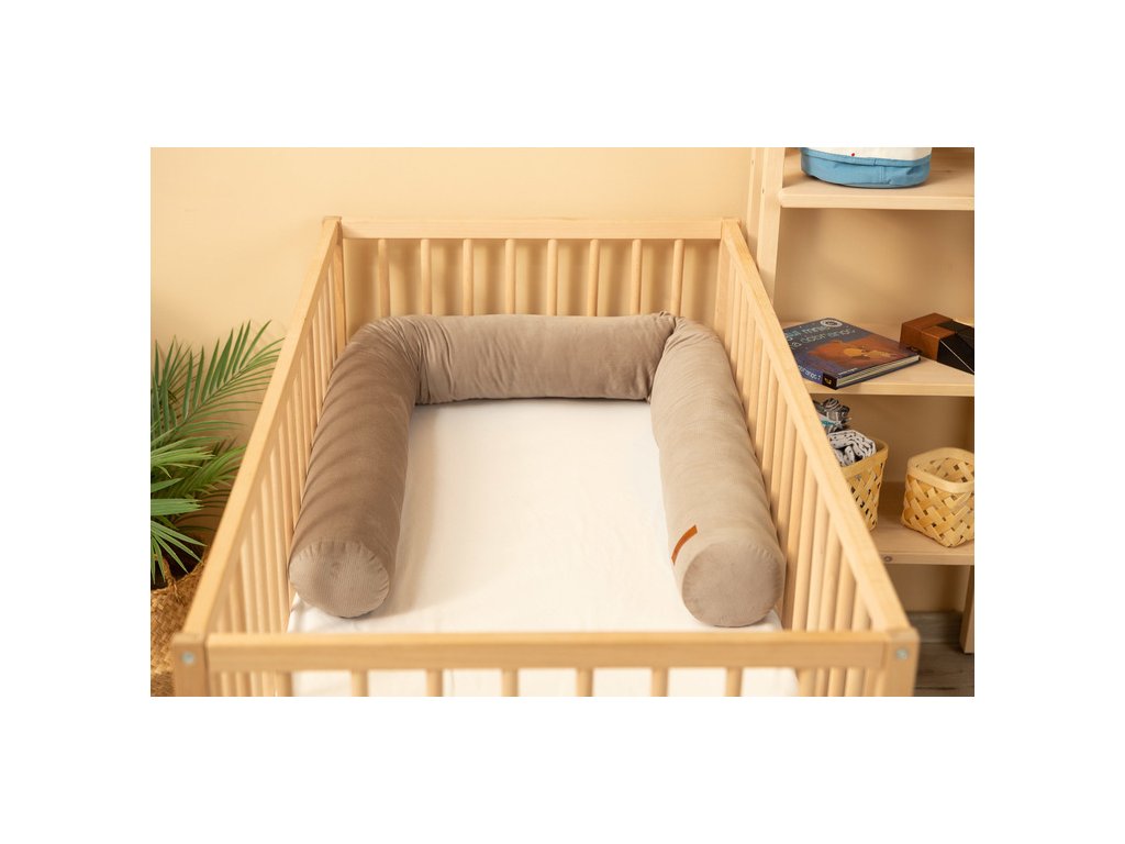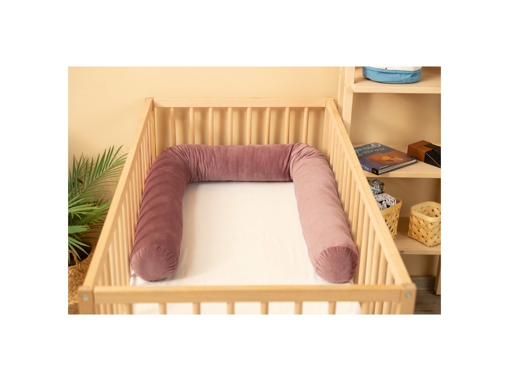 Ochraniacz do łóżeczka w kształcie wałka pomaga dbać o bezpieczeństwo i komfortowy sen dzieci. Zabezpiecza przed uderzeniem w szczebelki oraz izoluje przed chłodem ściany. Kładąc go pod drzwiami lub oknem można wykorzystać go jako ochronę przed przeciągami. Dzięki uniwersalnemu rozmiarowi, nadaje się do użytku przez dzieci w każdym wieku, jak i dorosłych. Ochraniacz jest miękki i elastyczny, a materiał i wypełnienie nie tracą swoich właściwości pomimo wielokrotnego prania. Wypełnienie stanowi antyalergiczna kulka silikonowa.