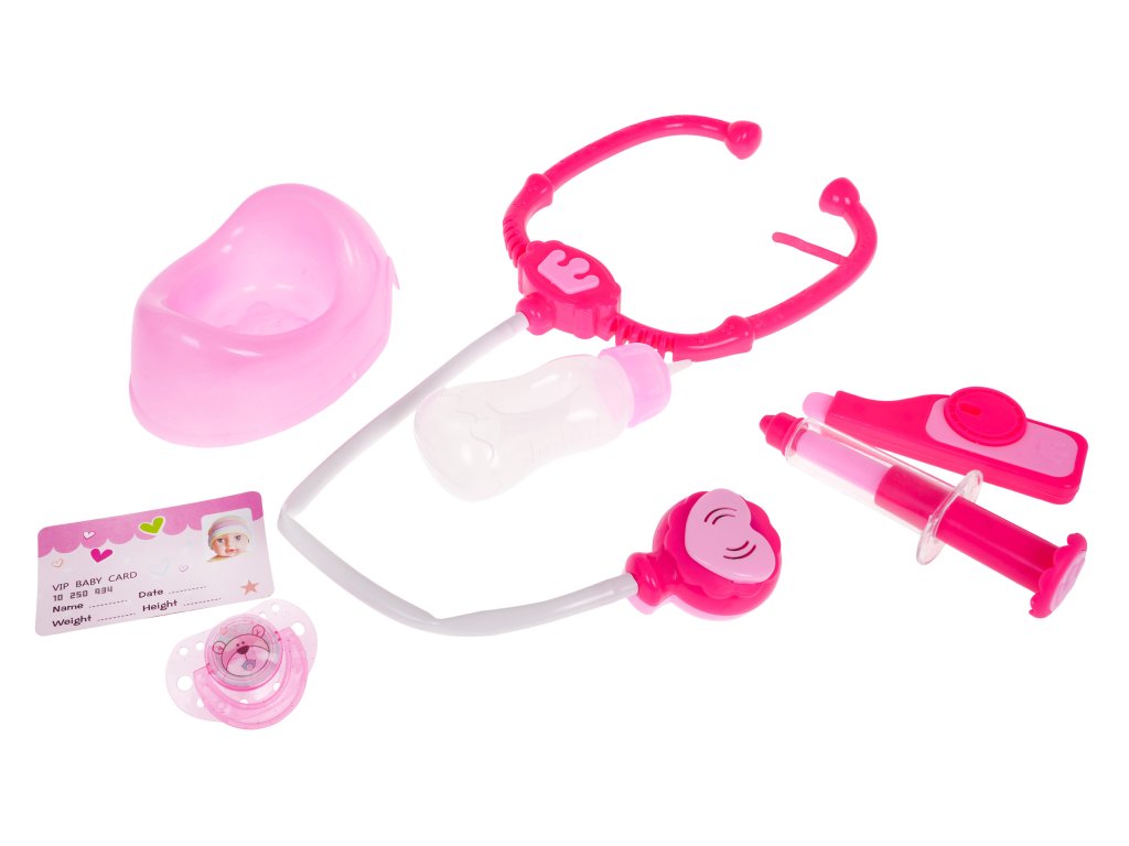 - Marysia doll, - potty, - magnetic pacifier, - magnetic syringe, - battery-powered stethoscope with flashing light effects and heartbeat sounds, - thermometer, - water bottle, - ID. |