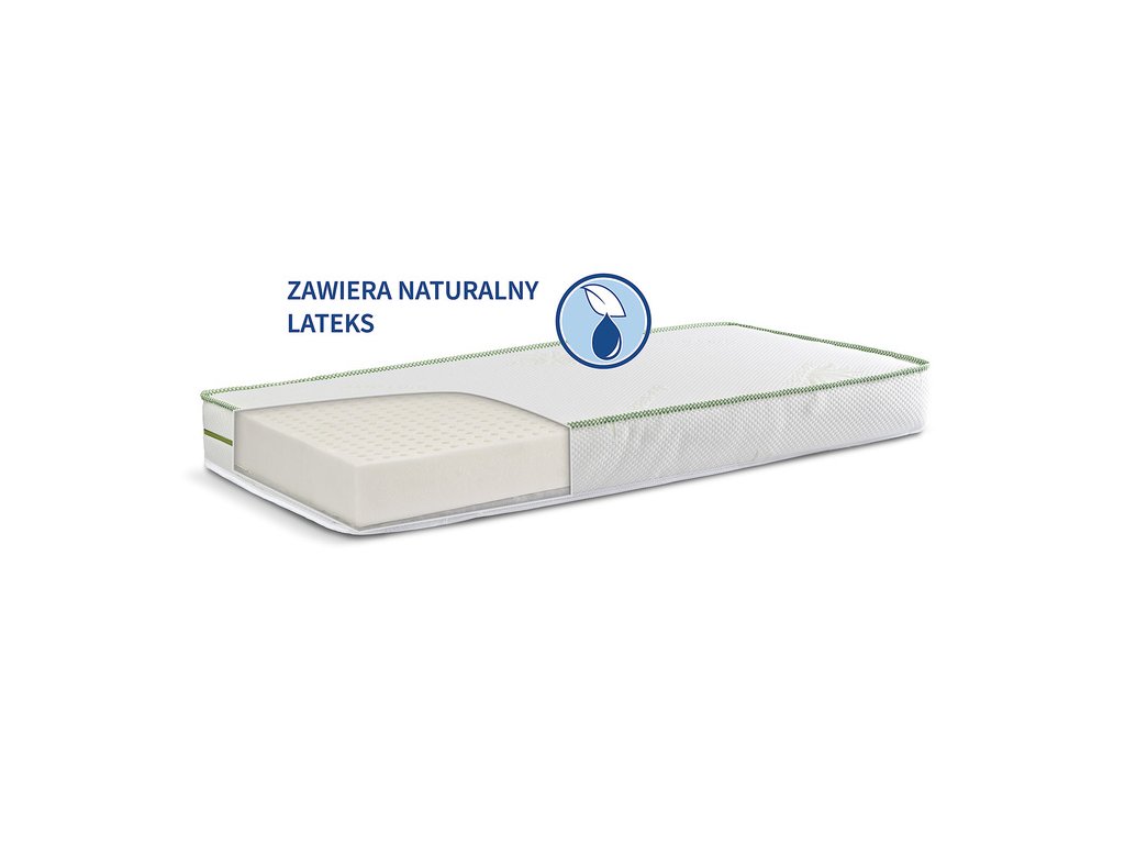 - wypełnienie materaca stanowi naturalny wkład lateksowy (9 cm) otulona włókniną puszystą