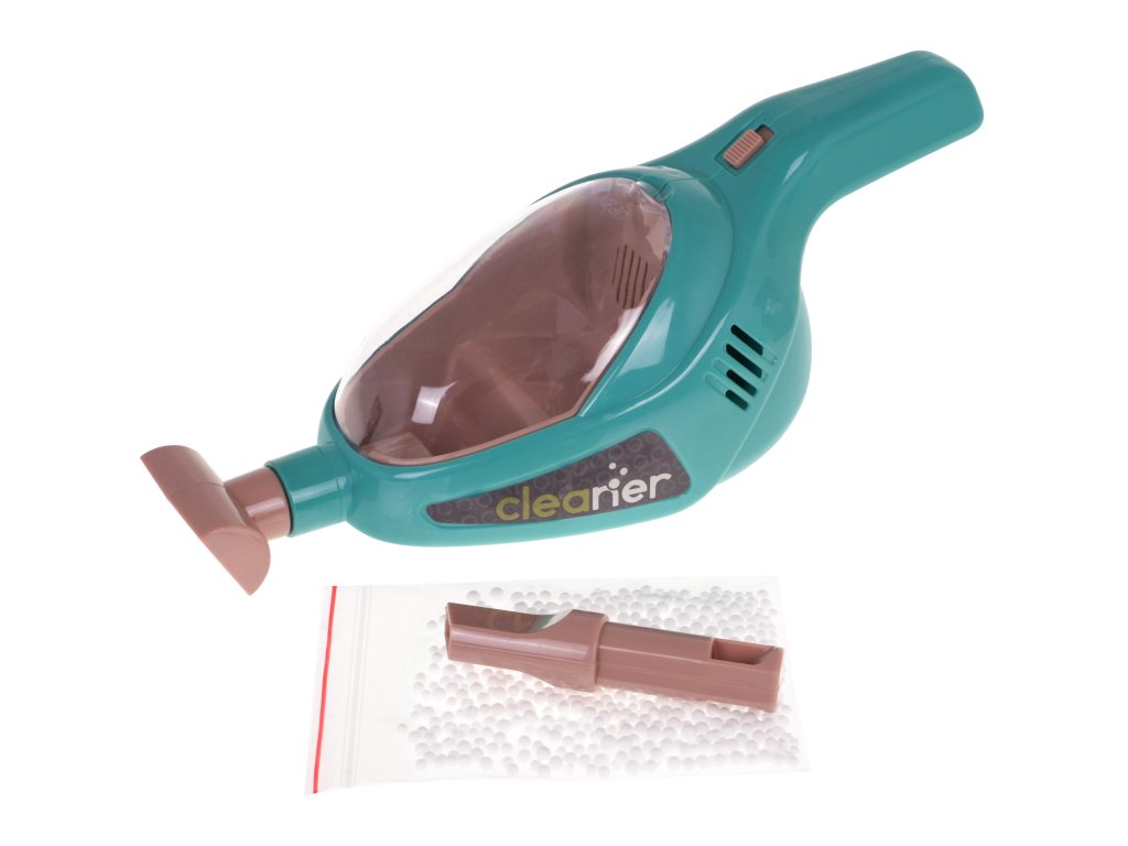 A large cleaning set with a hand-held vacuum cleaner and a trolley for accessories is intended for children from 3 years of age. The set was made with attention to detail from the best quality materials and is completely safe for the child. The trolley has large wheels, a comfortable push handle and two shelves to accommodate all cleaning accessories. The set includes many accessories such as a bucket with a mop, a brush, a broom with a dustpan, a fake washer, a battery-powered hand vacuum cleaner, Styrofoam balls, a plastic bag for garbage and a warning sign. The handheld vacuum cleaner is powered by 3 x AA 1.5V batteries, batteries are not included. It has sound and light functions, replaceable attachments and really vacuums the Styrofoam balls included in the set. While vacuuming, you can hear sounds characteristic of this activity and the interior of the vacuum cleaner is illuminated. Cleaning set specifications: - a large, stable trolley for cleaning accessories with wheels, a push handle and shelves for accessories, - vacuum cleaner with sound and light effects: * sound effects - the sound of vacuuming, * lighting effects - illumination of the interior of the vacuum cleaner, - vacuuming function, - replaceable vacuum cleaner attachments, |