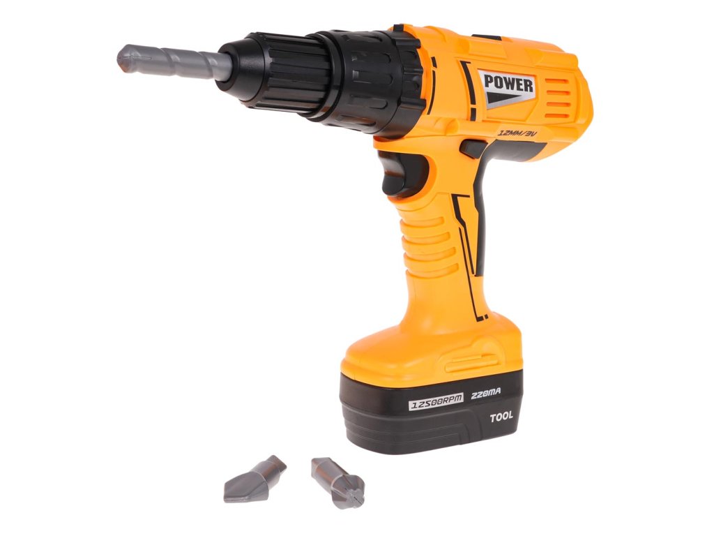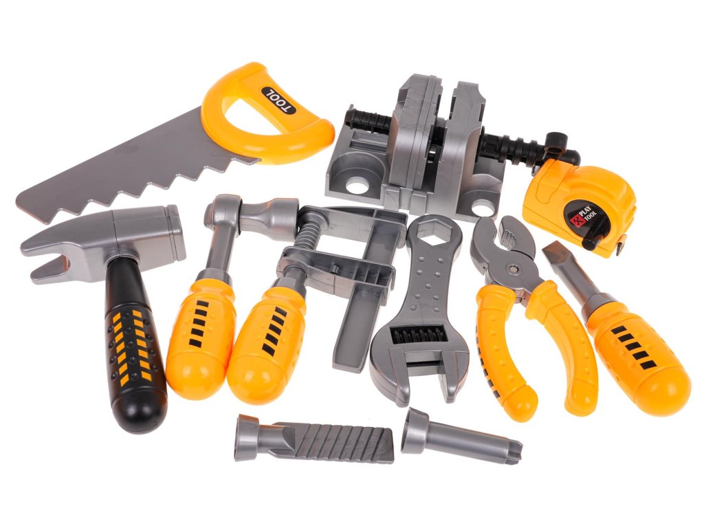 A richly equipped 2 in 1 tool set with an interactive drill-driver for children from 3 years of age. The set is made of the highest quality plastic and consists of 98 elements. From the construction parts of the set, we can arrange a workbench or a tool case. The set includes a battery-powered drill-driver, which actually screws and unscrews, and during work produces sounds characteristic of this device. The vice included in the set is extended manually. The set also includes: a hand saw, hammer, pliers, French wrench, clamp, wheel wrench, measuring tape, screwing elements and lots of screws, caps and expansion plugs. The drill-driver is powered by 2 x AA 1.5 V batteries (not included).