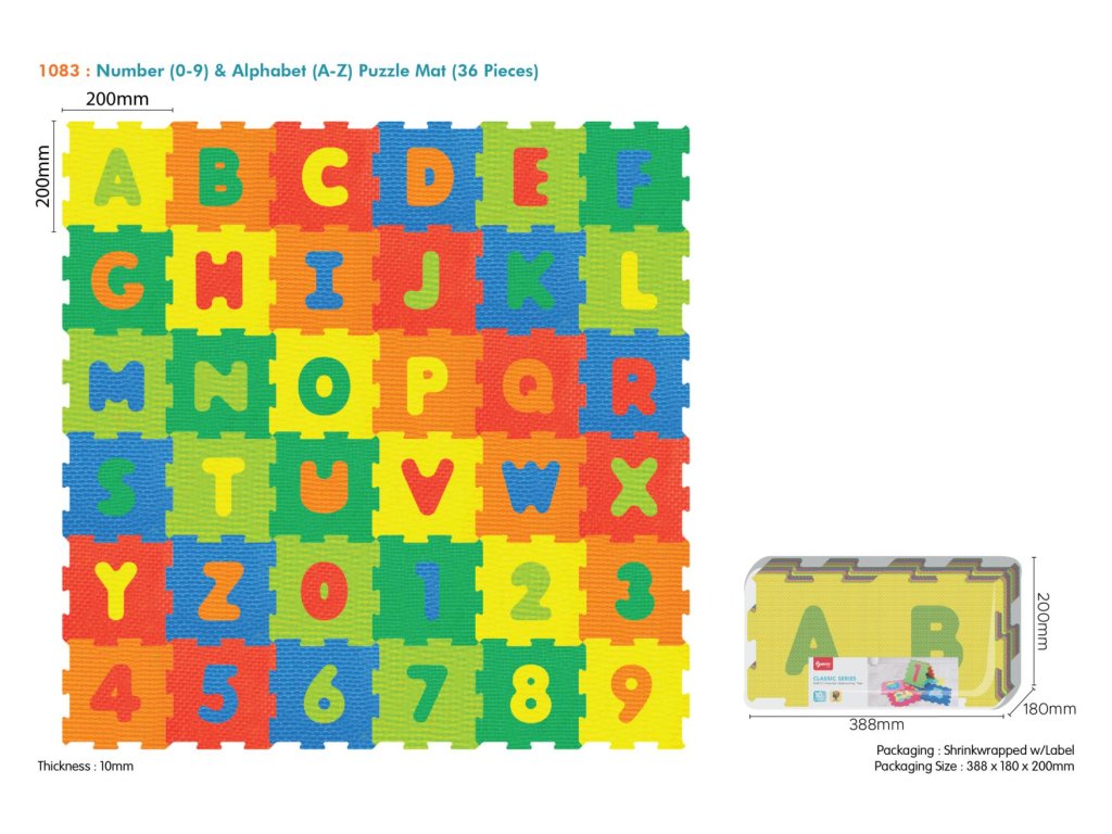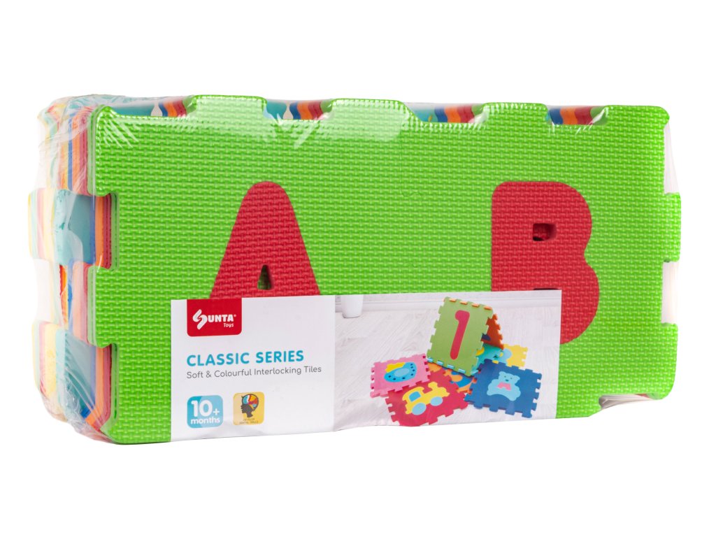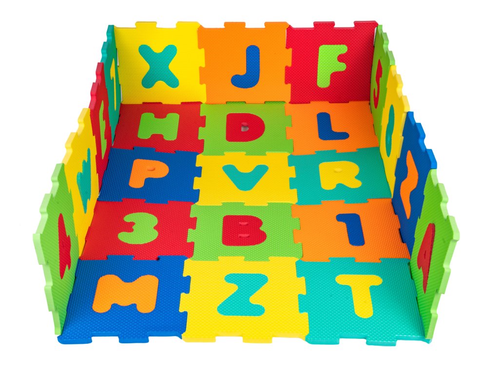 - 10 soft foam puzzles with removable numbers from 0 to 9, - 26 soft foam puzzles with removable letters from A to Z. |