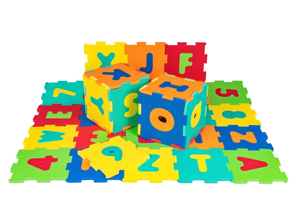 Educational, colorful foam puzzles with letters and numbers are a proposition for children from 10 months of age. The puzzle is made of soft and pleasant to the touch foam, it is very easy to keep them clean, just wipe them with a damp cloth. The set consists of 36 puzzle pieces from which you can arrange a mat on the floor to protect against the cold and absorb falls, or build spatial figures, e.g. a cube. The puzzles have removable numbers and letters, thanks to which the baby learns to match shapes. Features of foam puzzles: - made of child-safe EVA foam, - soft and pleasant to the touch, - anti-slip structure, - colors, - waterproof, - easy to keep clean, - protect against cold from the ground, - possibility of building a children's playpen, - cushion falls, - they teach through play - they stimulate imagination, concentration, visual-motor perception, logical thinking, teach colors, shapes, numbers, letters and building spatial figures. |