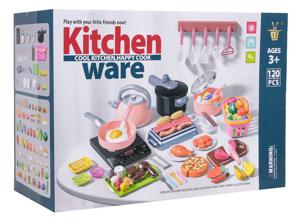 A comprehensive set of kitchen accessories for children aged three and over. The set consists of 120 pieces made of the highest quality materials in vibrant colors that encourage play. The set includes pots, a stove, a shopping basket, mock fruit and vegetables, and many other items. The stove is powered by 3 x AA 1.5V batteries (not included). Features: - a richly equipped set of up to 120 elements, - for children over three years of age, - the perfect set for fun food preparation, - the stove makes frying and cooking sounds. |