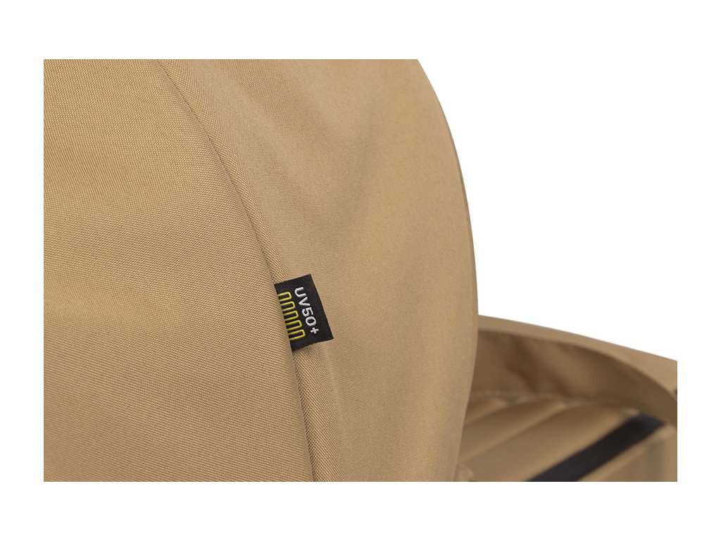 Vnější tkaniny mají filtr UV50+. Je vybavena připínací sluneční budkou. Horní kryt korbičky lze zcela demontovat, což bude hodit v teplých dnech. Vnitřek je vyroben z měkké bavlny ve světle šedé barvě. Korbička má také popruhy na přenášení.