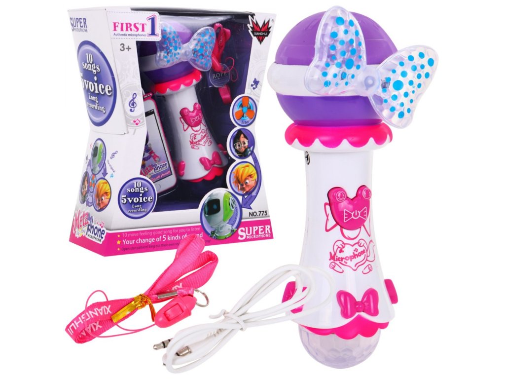 | EQUIPMENT SET: - 10 built-in melodies, - possibility of recording and playback, - a large loudspeaker, - 2 large diodes (bow and large ball) emitting colored light, - mp3 cable, - bow. |