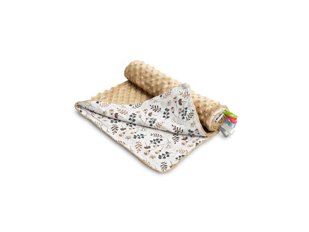 Lehká deka Minky je ideálním řešením pro jarní a letní procházky. Vyrobeno z jemné bavlny a měkké minky tkaniny, v závislosti na potřebách, může být použito na obou stranách. Každý vzor deky má jiný barevný potisk. Na dece jsou také barevné stuhy, které budou zajímat každé dítě. Univerzální lehká deka do kočárku nebo dětské postýlky ve velikosti 75×100 cm.