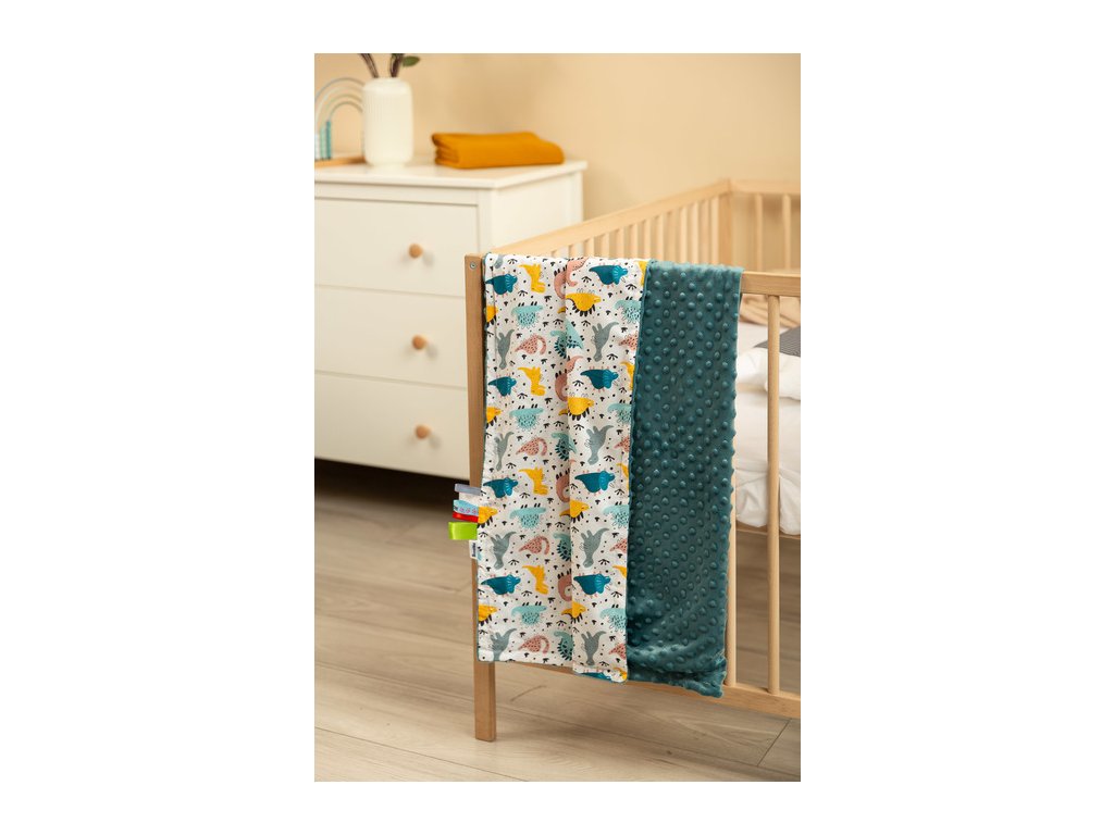 Lehká deka Minky je ideálním řešením pro jarní a letní procházky. Vyrobeno z jemné bavlny a měkké minky tkaniny, v závislosti na potřebách, může být použito na obou stranách. Každý vzor deky má jiný barevný potisk. Na dece jsou také barevné stuhy, které budou zajímat každé dítě. Univerzální lehká deka do kočárku nebo dětské postýlky ve velikosti 75×100 cm.