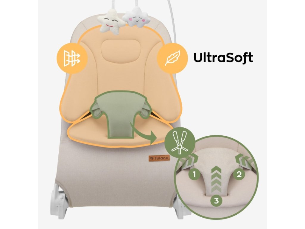 Speciální funkce: Přirozené houpání - rozvíjí rovnováhu a koordinaci dítěte 4 polohy opěradla - od polohy vleže až po polohu v polosedě, ideální pro spánek a hraní Podhlavník s hračkami - podporuje rozvoj manuálních schopností a povzbuzuje k aktivitě Bezpečnost - 3bodové bezpečnostní pásy, měkký pásek v rozkroku, protiskluzové nožičky Pohodlí a hygiena - extra měkká matrace UltraSoft a pratelné čalounění Kompaktní a lehká - snadno se skládá, ideální na cesty a skladování Od narození - ergonomický tvar přizpůsobený potřebám těch nejmenších Přirozené houpání - radost a rozvoj Vaše děťátko může kolébku houpat samo díky přirozeným pohybům svých ručiček a nožiček. To je nejen zábavné, ale také: - Rozvíjí rovnováhu a koordinaci. - Učení vztahu "hýbu se = houpám se". - Uklidnění a zklidnění. Vaše dítě tak může bezpečně objevovat svět. čtyřstupňové nastavení opěradla Ploché - pro skladování a přepravu. Vleže - pro spánek. Pololežící - pro hraní. Polosed - pro zvídavá batolata. 100% bezpečné nastavitelné 3bodové bezpečnostní pásy - perfektní přizpůsobení pro vaše děťátko. Měkký pásek vrozkroku - chrání jemnou pokožku vašeho dítěte. Protiskluzové nožičky - stabilita a ochrana podlahy. Pohodlí na nejvyšší úrovni Přídavná matrace UltraSoft - měkká a prodyšná. Odnímatelné čalounění - příjemné na dotek, prodyšné, snadno omyvatelné. Ergonomický tvar - zdravé držení těla, správná opora hlavy a páteře. Čelenka s hračkami - zábava a učení v jednom Odnímatelná čelenka se 2 okouzlujícími hračkami pro úsměv a trénink malých ručiček: - podporuje uchopování - podporuje rozvoj manuálních dovedností - snadno nastavitelná poloha čelenky Lehká a kompaktní Rychlá a intuitivní montáž bez použití nářadí. Skládá se naplocho - ideální pro přepravu a skladování. Specifikace Výrobce: Tulano Model: Moon 50 Grey Věk: pro děti 0+, do 9 kg nebo dokud nesedí bez pomoci Barvy: béžová Nastavení opěrky zad: složení: 4 stupně, lze sklopit do roviny Čalounění: polyester, odnímatelné, pratelné Hmotnost: 2,9 kg Další příslušenství: pásek na ruku se 2 hračkami, náhradní matrace Bezpečnost: splňuje normu EN 12790-1:2023 Každý prostor je jiný příběh Každý prostor je jedinečný a má svůj vlastní příběh, při jehož objevování nabízíme podporu. Jako značka pomáháme odhalit to, co je v prostoru nejdůležitější.Doplňkové parametry