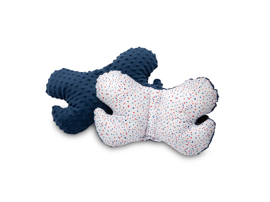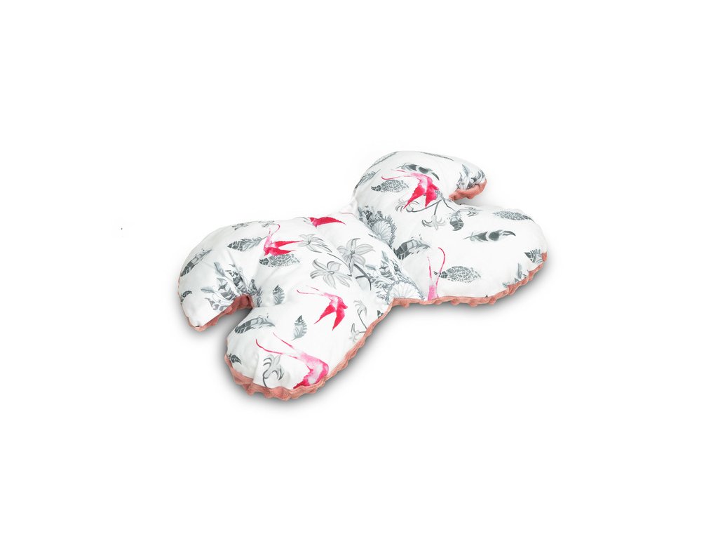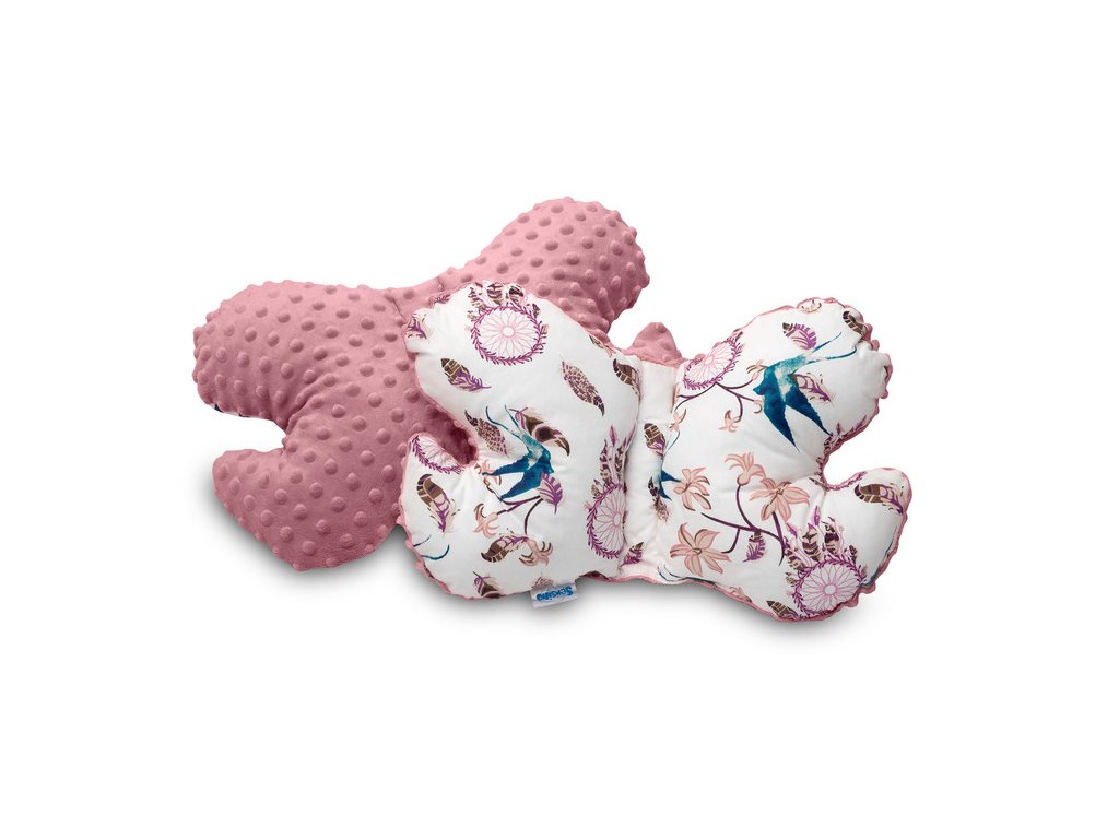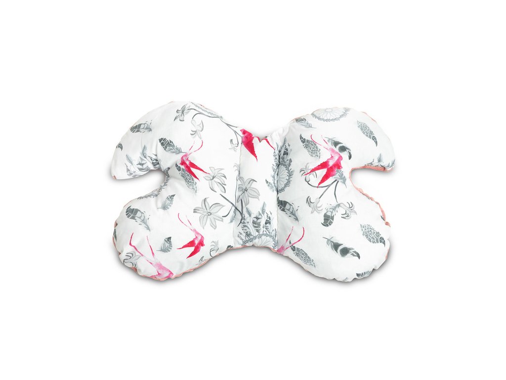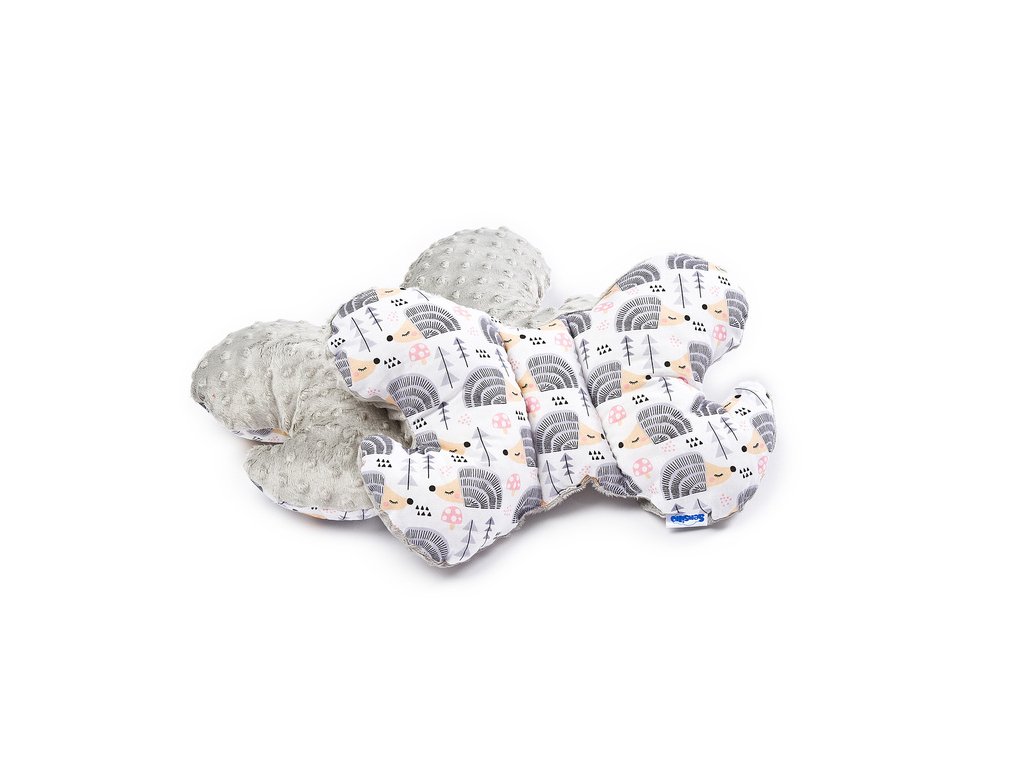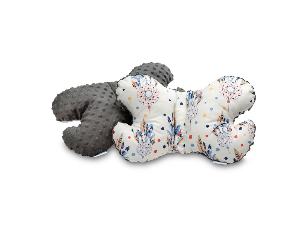 Motýlí polštář zajistí bezpečnou a pohodlnou cestu pro dítě. Jeho speciální tvar se přizpůsobuje hlavě dítěte sedícího v autosedačce a kočárku. Poskytuje dodatečnou ochranu hlavy před nárazy. Je potažena na jedné straně měkkou minky tkaninou a na druhé straně jemnou bavlnou. Výplň polštáře je antialergická silikonová netkaná textilie.