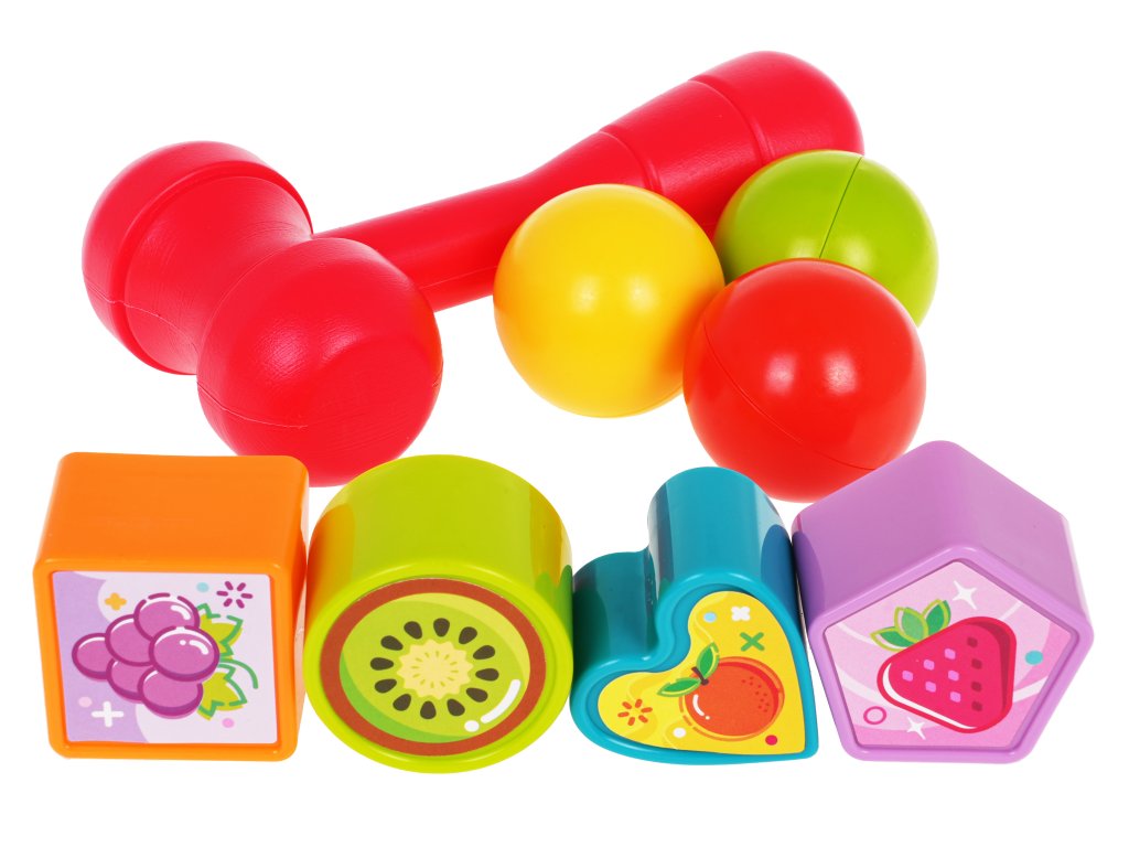 - bus, - 4 x block, - 3 balls with rattles, - hammer |