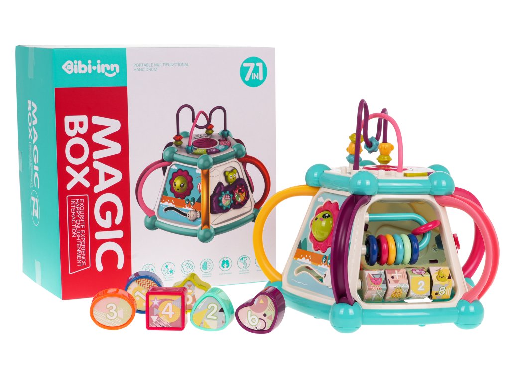 Interactive 7-in-1 cube for children from 6 months of age. The cube is made of the highest quality plastic in vivid colors encouraging the toddler to discover and play. The toy has no sharp edges, it is completely safe for the child. The cube has seven walls, each of which offers a different type of play. Through play, the child develops manual skills, eye-hand coordination, learns to solve problems. The toy is powered by 3 x AA 1.5 V batteries (not included)