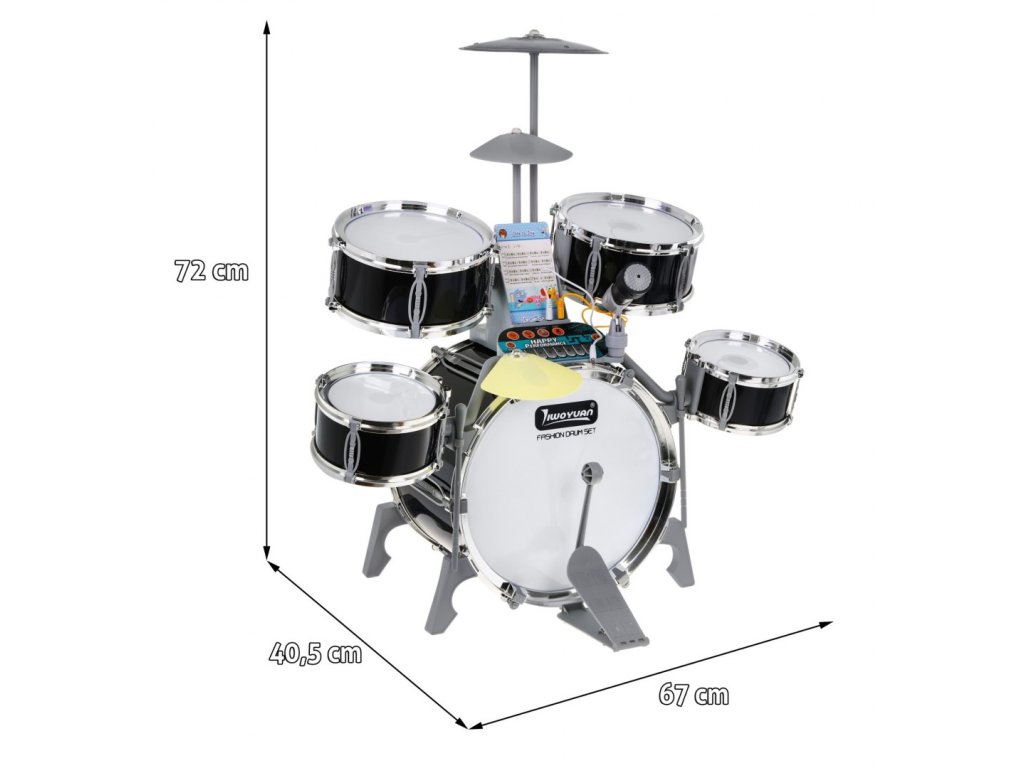 - drums approx. 72 cm x 67 cm x 40.5 cm, - large drum with a diameter of 30 cm, - medium drum with a diameter of approx. 20 cm, - a small drum with a diameter of approx. 15 cm, - a metal plate with a diameter of approx. 20 cm, - electric plate approx. 11.5 cm x 14 cm, - stool approx. 24 cm x 18.5 cm x 22 cm, - packaging approx. 56 cm x 44 cm x 26.5 cm - sticks approx. 23.5 cm, - stand approx. 65 cm high, - stool approx. 22 cm x 19 cm, - packaging approx. 61 cm x 38 cm x 20.5 cm. |