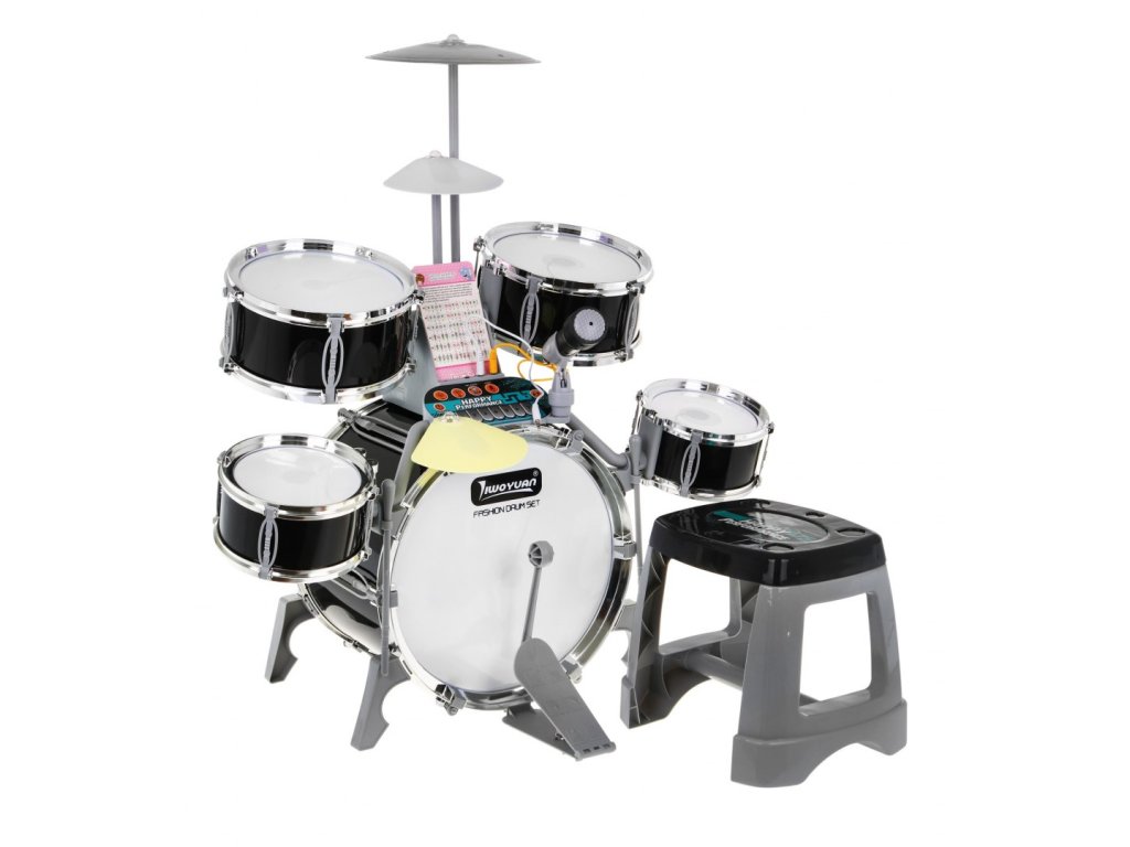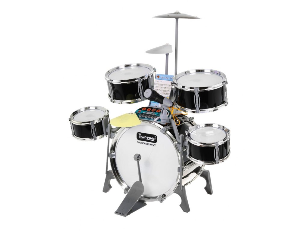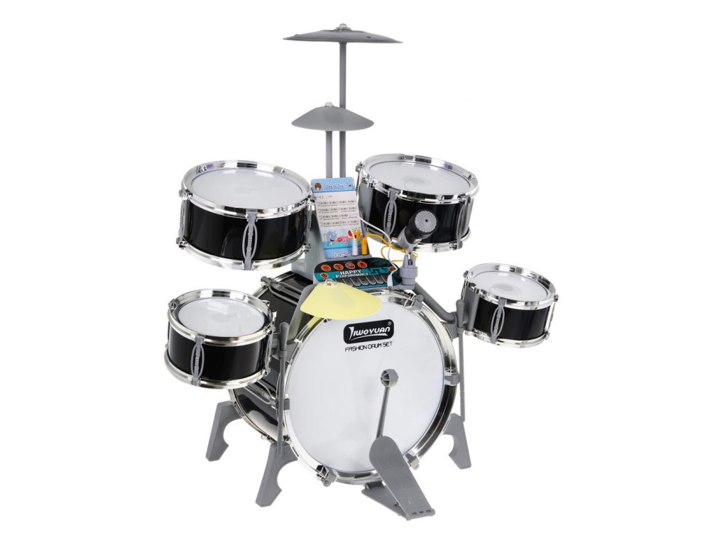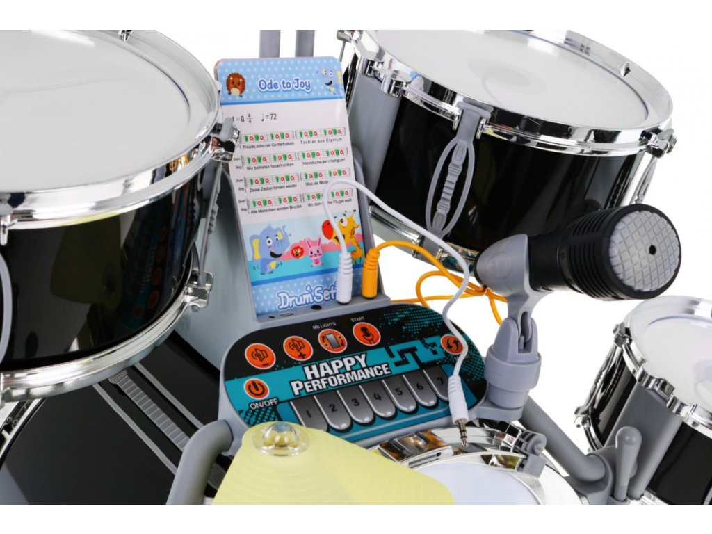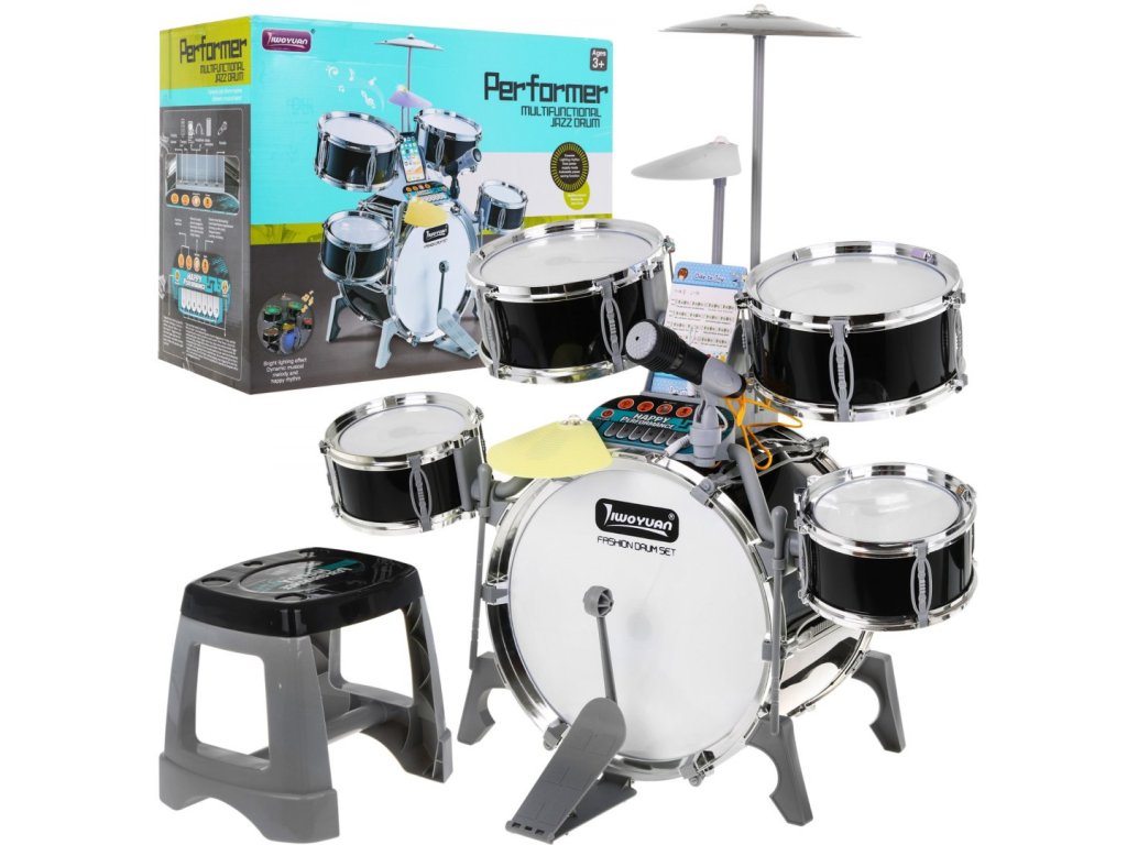 Multifunctional large drums with professional sound and illuminated drums is a toy for children from 3 years of age. The drums have 5 drums, 2 electronic (plastic) cymbals and one metal cymbal, control panel, microphone, 2 sticks and 6 cards with notes for learning to play. The set also includes a comfortable stool. This sensational drum kit is powered by 3 x AA batteries, but can also be charged via USB. The drums have sound and light effects visible when hitting the sticks against drums and cymbals. In the drum connection mode with the phone, pulsating rhythms of the drum and cymbal lighting appear so that your child learns to play the drums by imitating them. Thanks to the music panel, you can connect a phone or headphones to the drums, and add background music. The drums we present will surely appeal to every young drummer and will give him a lot of fun. Drum functions: - pulsating rhythms of drum lighting with music played from the phone, - lighting and sound effects when hitting the drums with sticks, - dual power mode, - automatic energy saving function, - dynamic melody, - karaoke, - connection to the phone, - headphone jack, - charging port with charging indicator, - volume control.. | |