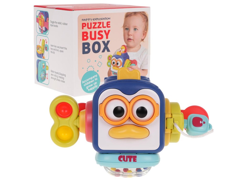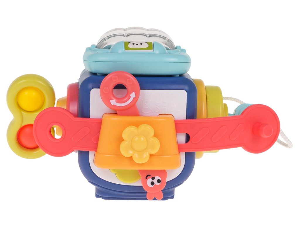 Multifunctional , educational toy for babies from 12 months of age. This portable toy combines many functions and will not allow boredom, there are many elements to discover and many skills to practice. The baby can press, turn knobs, move, match, pull various elements of the toy, which stimulates his hand-eye coordination and exercises small hands. The toy is made of the best quality materials in vivid colors.