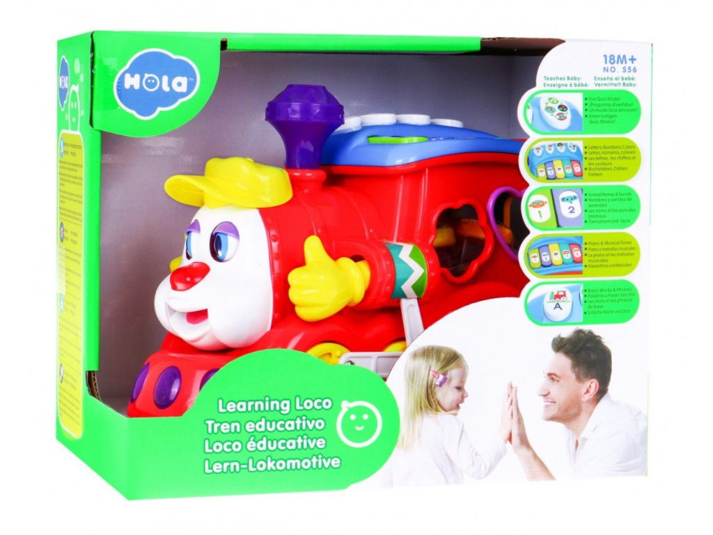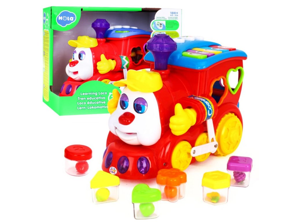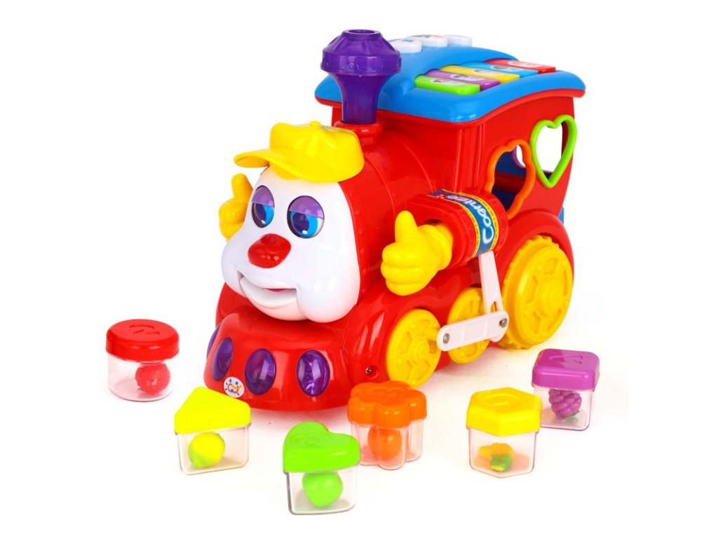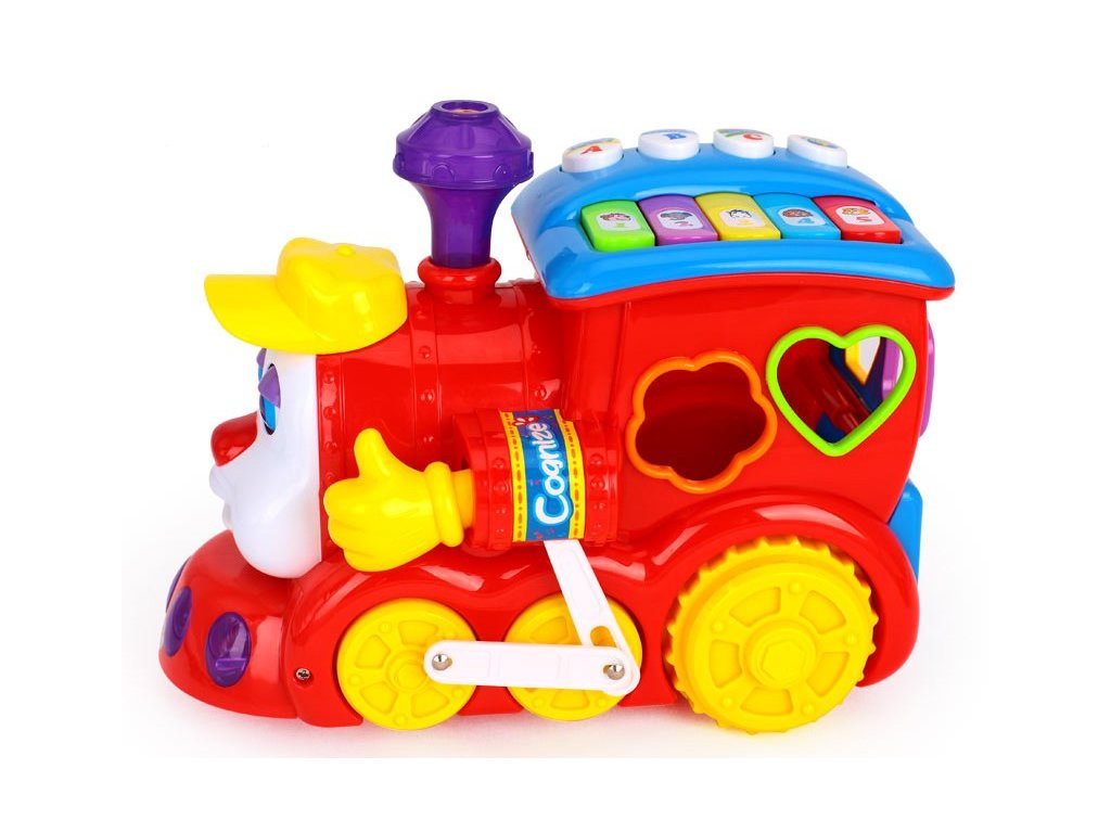 | Educational train with sounds and a melody. He drives, shines, "pouf", moves the chimney, eyes, hands and mouth. Locomotive is also a sorter for stacking differently colored blocks of various shapes - they can be stored in the glove box at the back of the locomotive. The button in the chimney is a switch between successive modes of educational play, turns off the melody, launches the piano and buttons A, B, C. The button with the question mark changes the following stages of play: 1. thanks to individual buttons A, B, C - the child learns letters, phrases: station, tracks, tunnel. 2. the color piano keyboard also has many functions: - sounds the piano, - by pressing next keys, the child recognizes the names of animals and the sounds they make, - the toddler has the opportunity to recognize colors - quiz - fun in guessing letters, numbers, animals, colors. Built-in colorful lights make the fun more attractive. This very impressive and magical set is powered by three AA batteries - not included. |