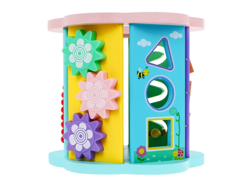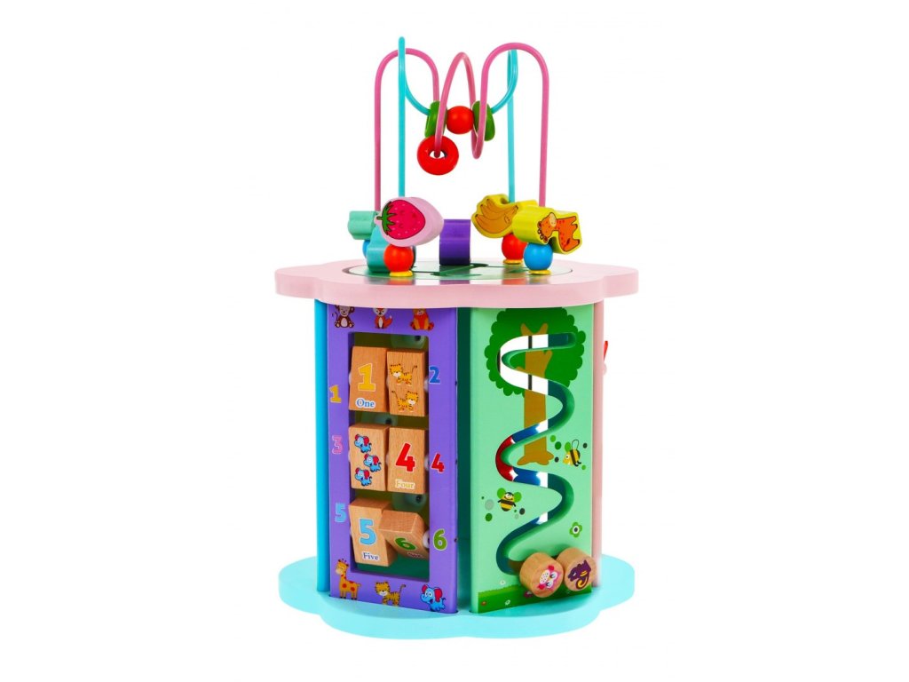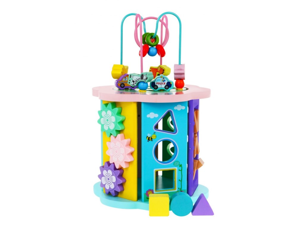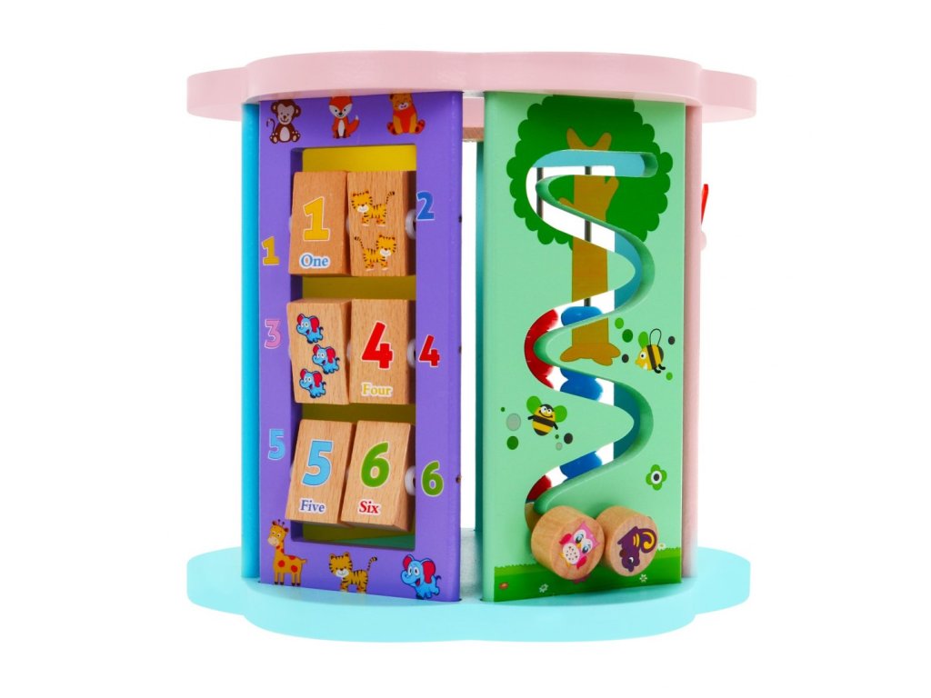 Wooden educational multifunctional cube is a tool for learning through play. It is intended for children from 3 years of age. It is made of safe materials, the wood is covered with non-toxic colored paint in pastel colors pleasant to the eye. It has a streamlined shape without sharp ends. In the upper part there is a maze with beads, fruit and animals, and cars sliding on the track. This part can be detached from the whole. In the middle of the cube there is a place for blocks and animals with magnets that were included in the set. There is a lake on the bottom of the cube where you can place animals with magnets, and then fish them with a fishing rod. The presented cube is an 8-in-1 toy, each wall has different tasks. Blue wall with an abacus On this wall, the child will be able to perform the first math operations: addition and subtraction. Pink wall with a clock The child will get acquainted with the clock, learn to recognize the time. Green wall with a labyrinth with animals The sliding elements perfectly support the development of toddlers and develop manual dexterity. A purple wall with a puzzle with letters and animals Learning to recognize numbers and count. Blue wall sorter The child learns to recognize shapes, colors, and how to sort objects. Improves manual skills, exercises the efficiency and precision of small hands movements. Yellow wall, colored gears making a mechanical noise Playing with gears triggers creativity in the child, teaches observation and concentration. The fun with this cube will not end quickly, and thanks to the solid quality of workmanship, it will serve the child for a very long time. | |