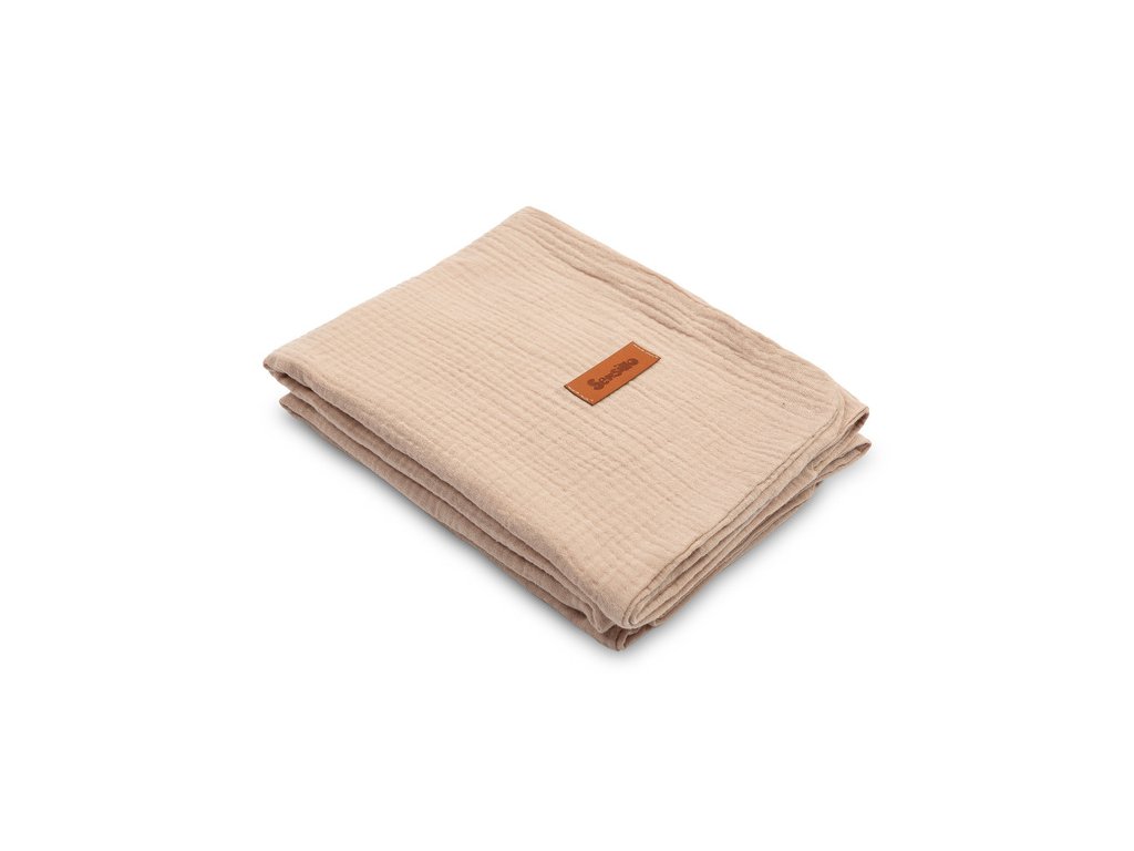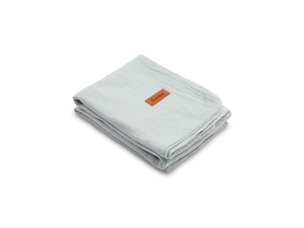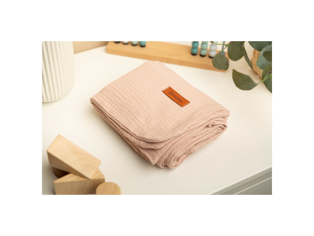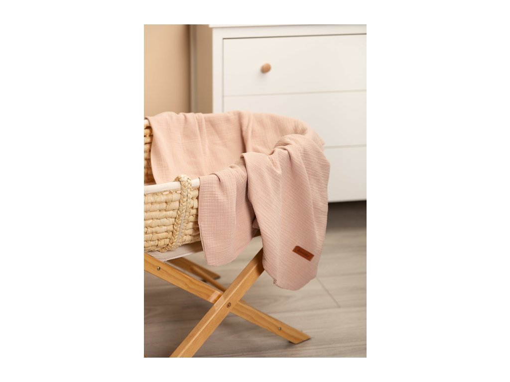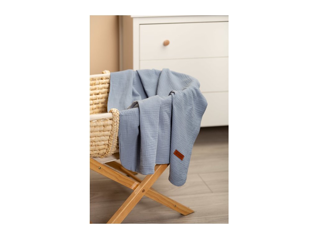 Mušelínová deka je vyrobena z vysoce kvalitní 100% bavlněné tkaniny. Je vyroben ze dvou vrstev bavlny, takže je lehký a vzdušný. Bude dobře fungovat při procházkách za teplých slunečných dnů, může být použita jako silnější plena, pro každodenní hry nebo jako kryt během krmení. Jemná bavlna zajišťuje dostatečnou cirkulaci vzduchu a také nezvyšuje citlivost ani nedráždí pokožku dítěte. Další výhodou přikrývky je krásná textura tkaniny.