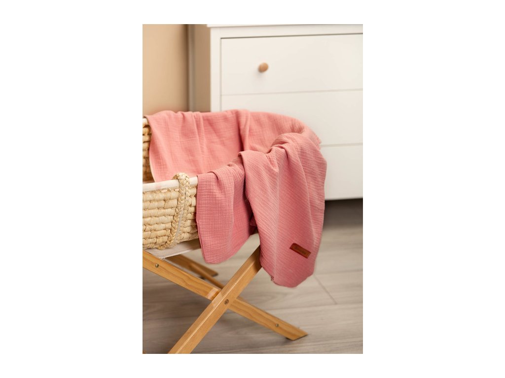 Mušelínová deka je vyrobena z vysoce kvalitní 100% bavlněné tkaniny. Je vyroben ze dvou vrstev bavlny, takže je lehký a vzdušný. Bude dobře fungovat při procházkách za teplých slunečných dnů, může být použita jako silnější plena, pro každodenní hry nebo jako kryt během krmení. Jemná bavlna zajišťuje dostatečnou cirkulaci vzduchu a také nezvyšuje citlivost ani nedráždí pokožku dítěte. Další výhodou přikrývky je krásná textura tkaniny.