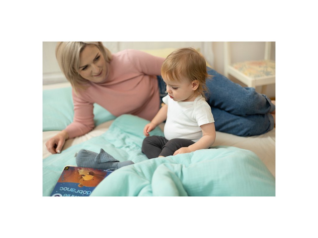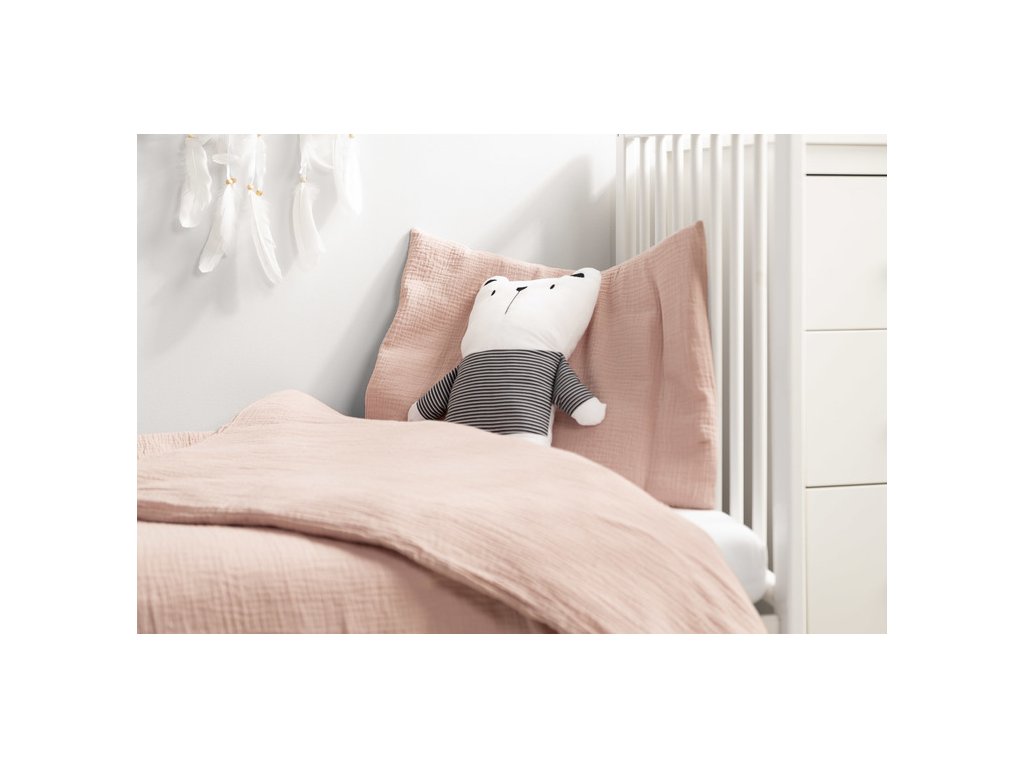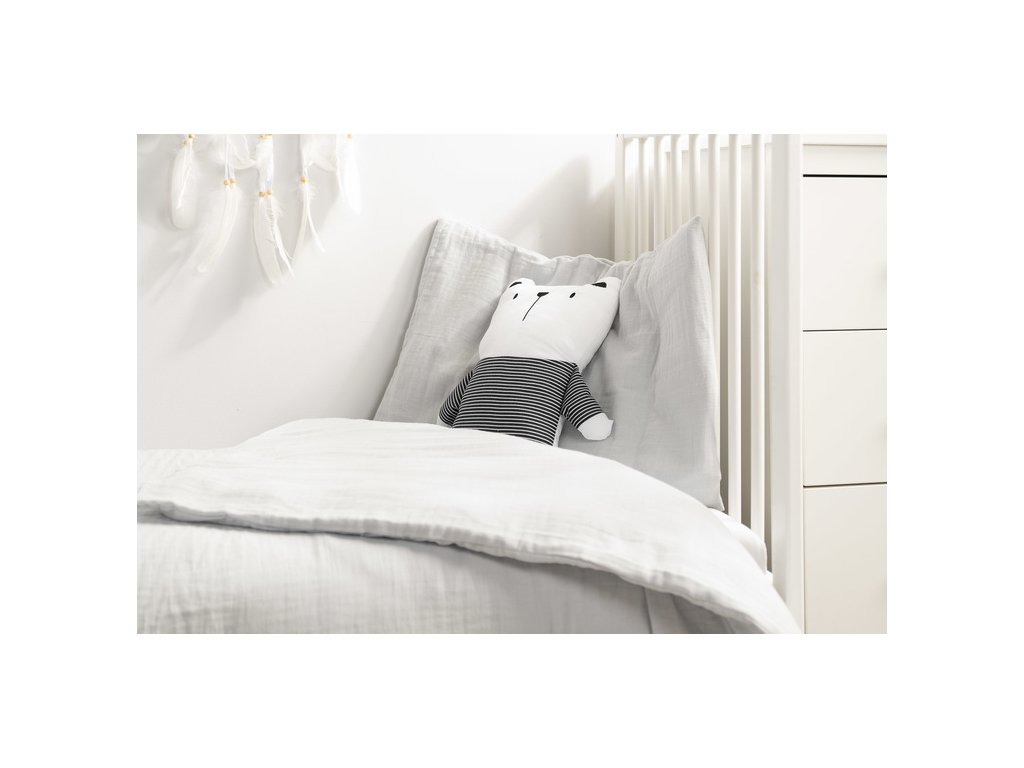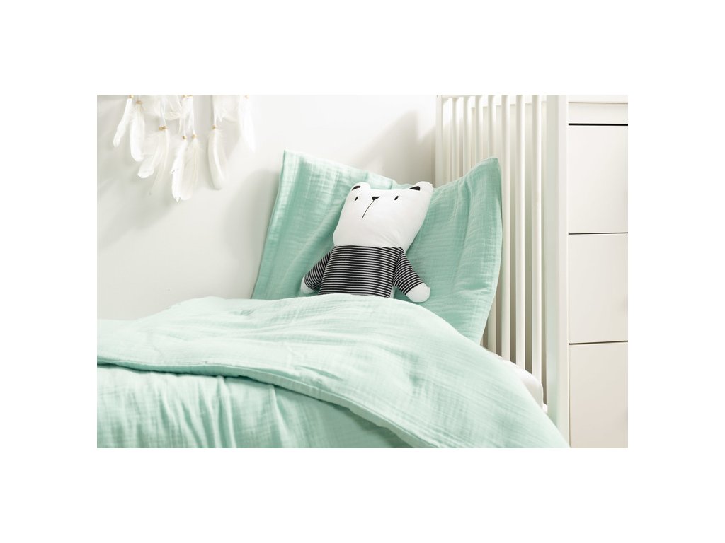 2-dílné povlečení je vyrobeno z příjemného na dotek, odolného a 100% bavlněného mušelínu. Barevné kombinace dokonale zapadnou do každého dětského pokoje. Sada obsahuje přikrývku s wym. 100x135cm a povlak na polštář 40x60cm. Přikrývka je upevněna zipem, zatímco polštář je upevněn záložkou.